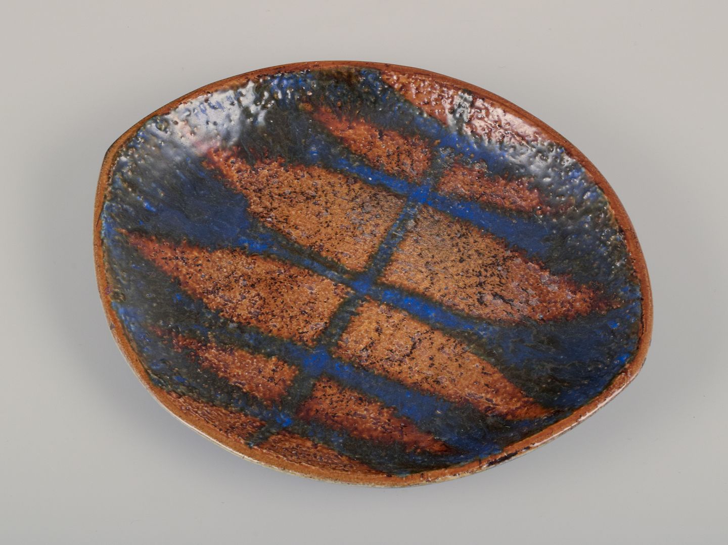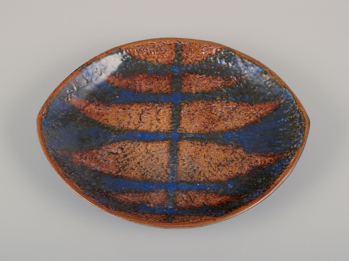 Mari Simmulson Mari Simmulson (1911-2000) for Upsala Ekeby, Sverige. Lav skål i keramik. Glasur i blålige og okkergule toner.