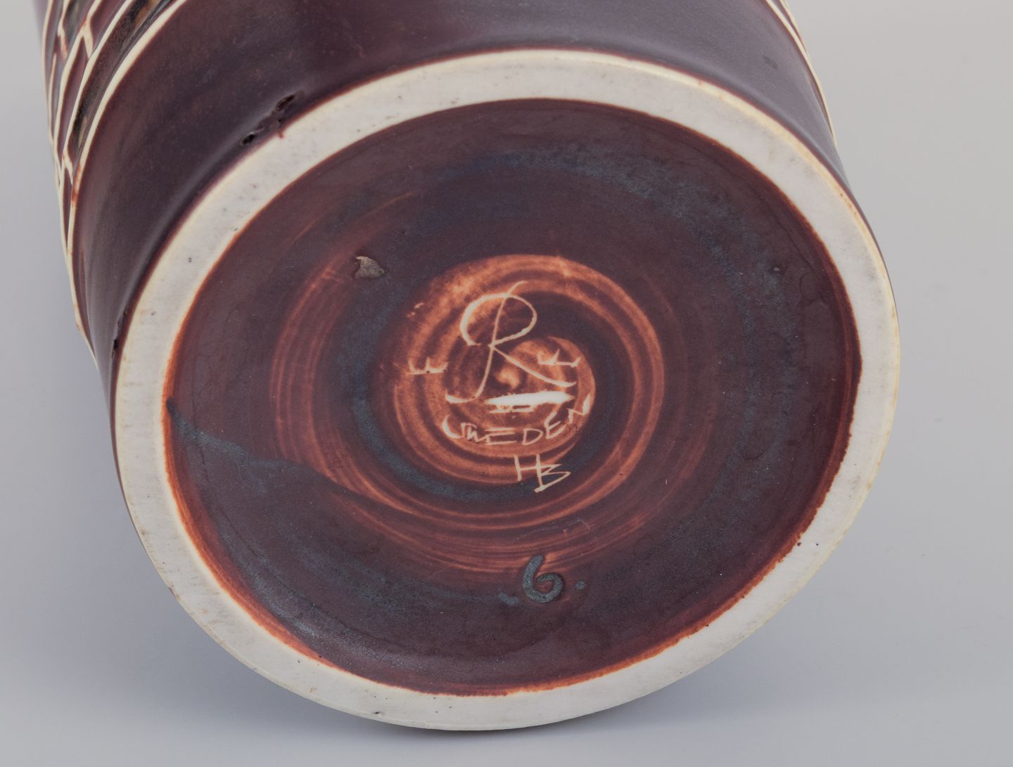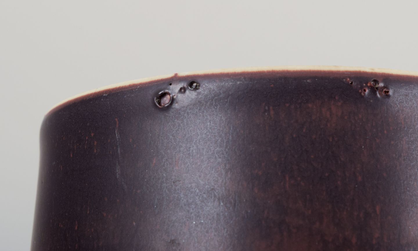 Anden sortering. Små glasurbobler i bunden af vasen, fra produktionen.