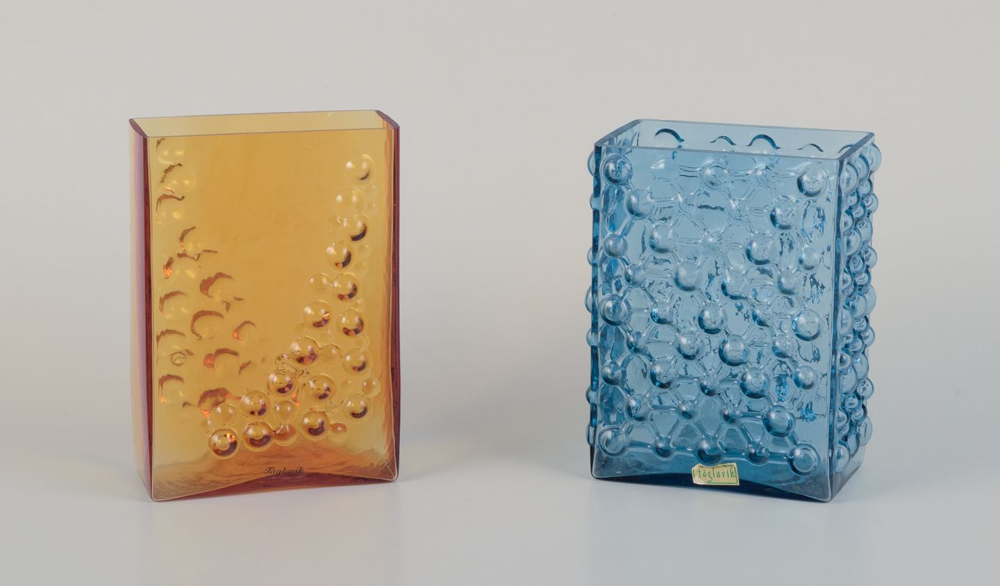 Fåglavik, Sweden. Two art glass vases. Modernist design with interconnected circles.