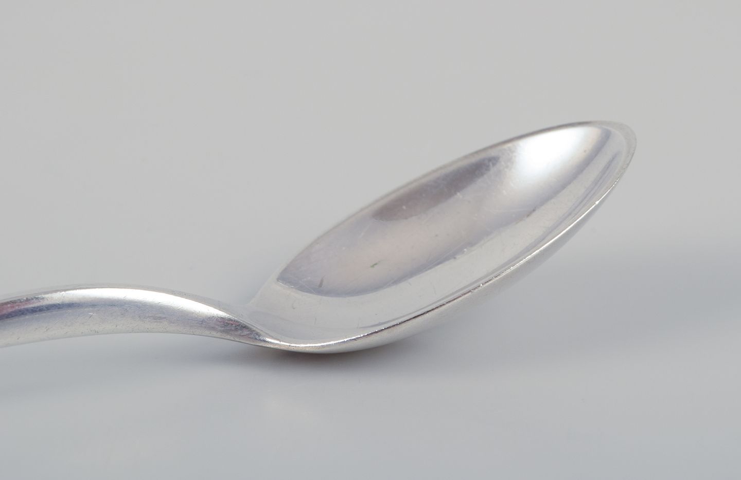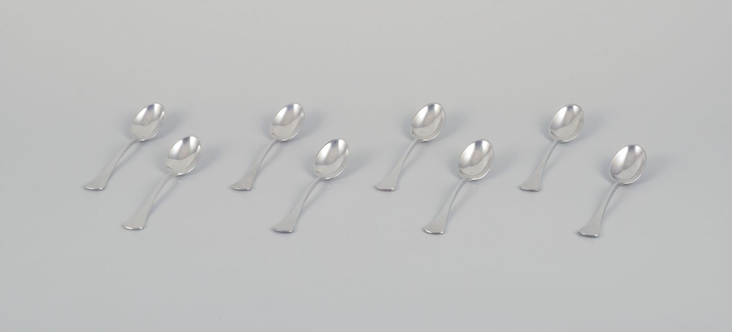 Horsens Sølv. Et sæt på otte kaffeskeer i tretårnet sølv.