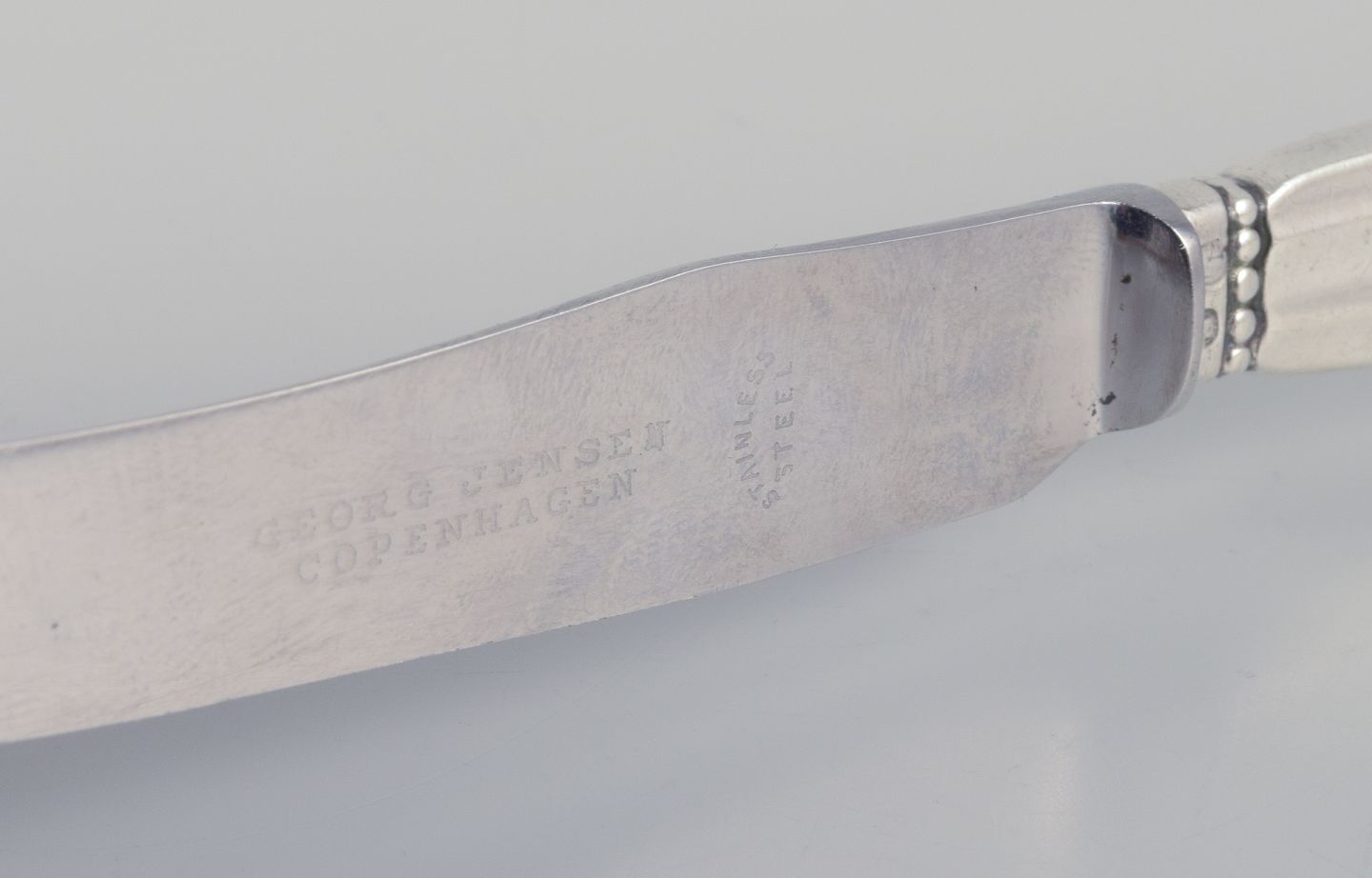 Georg Jensen Konge. Et sæt på seks frugtknive med skaft i sterlingsølv.