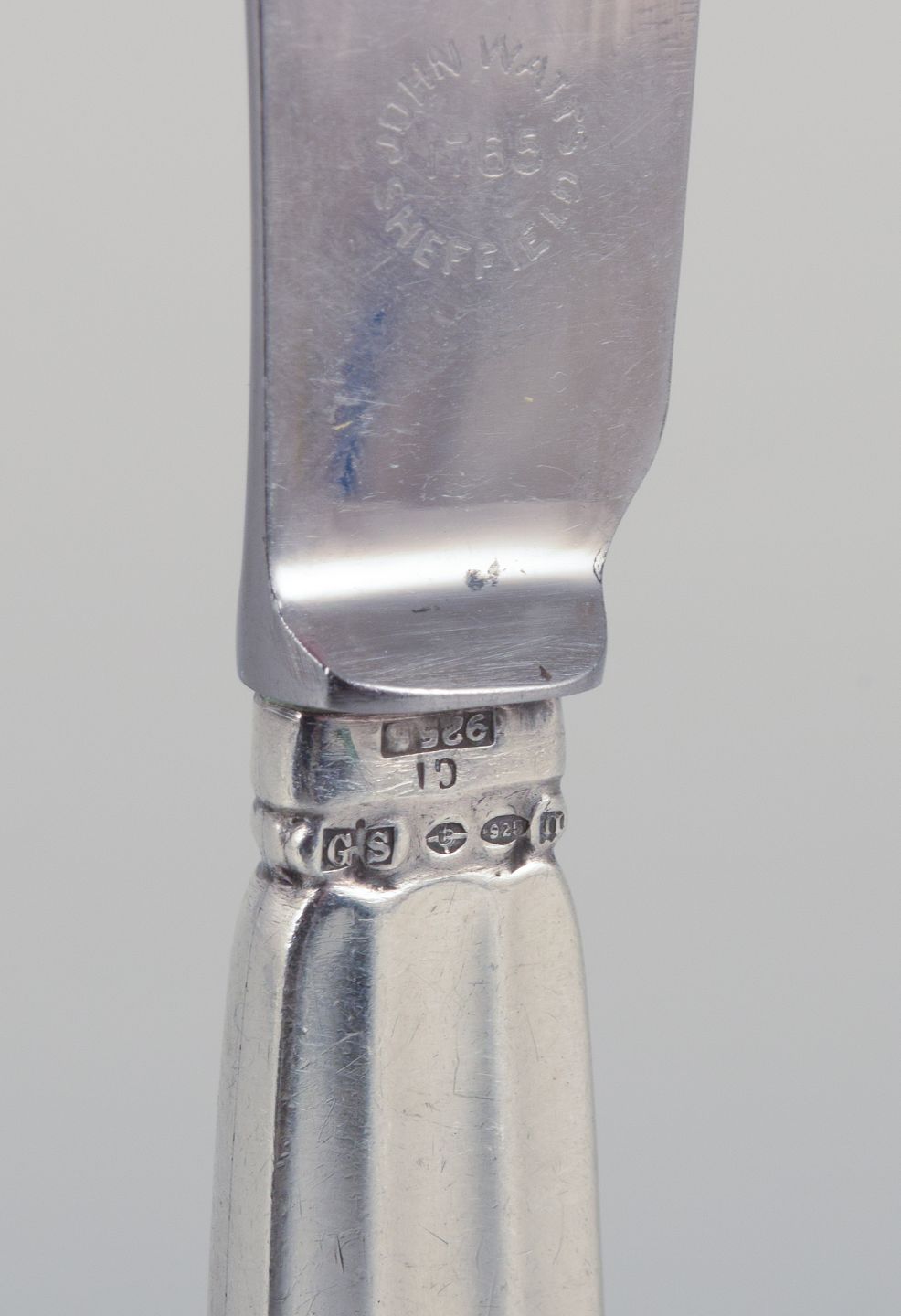Georg Jensen Konge. Et sæt på seks frugtknive med skaft i sterlingsølv. Blad i rustfrit stål.