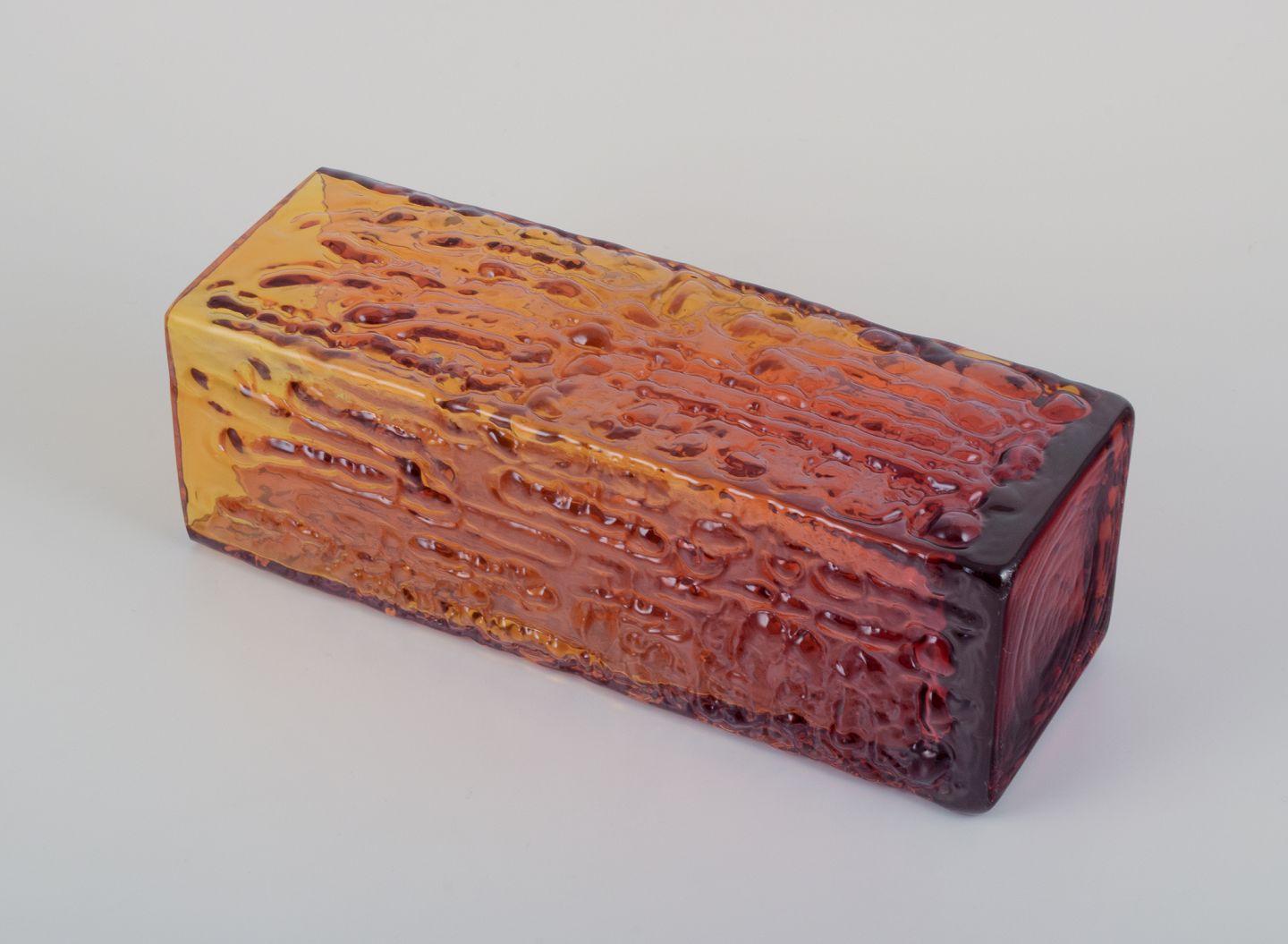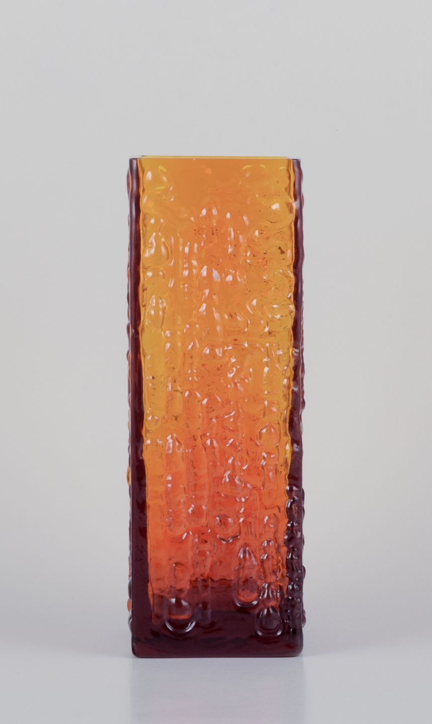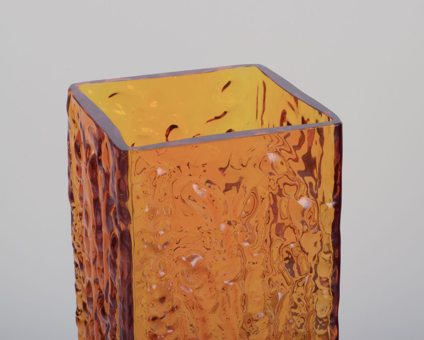 Skandinavisk glaskunstner. Stor kunstglasvase i ravfarvet glas.