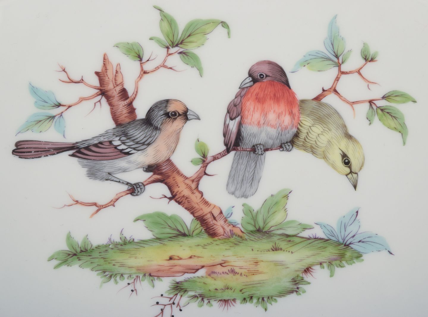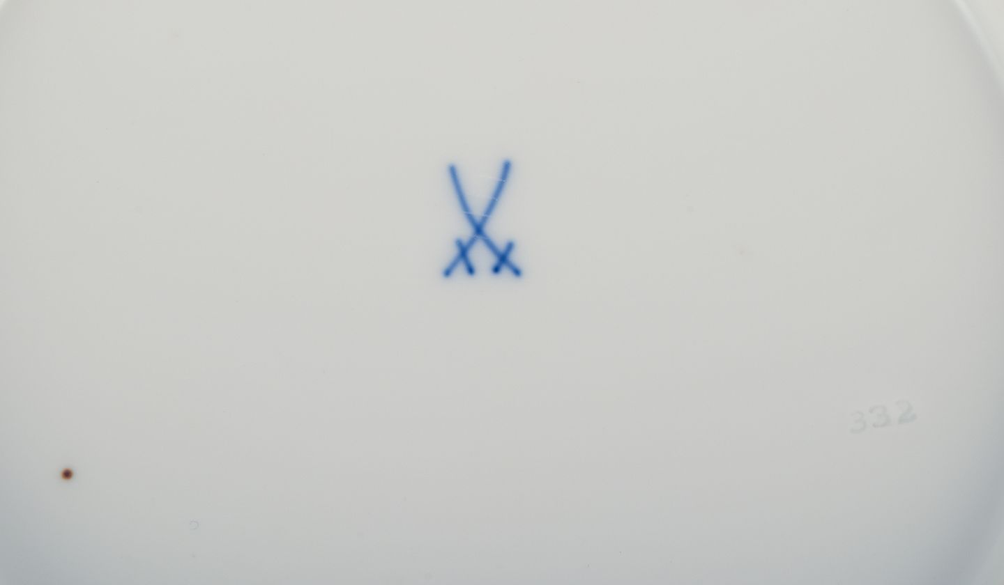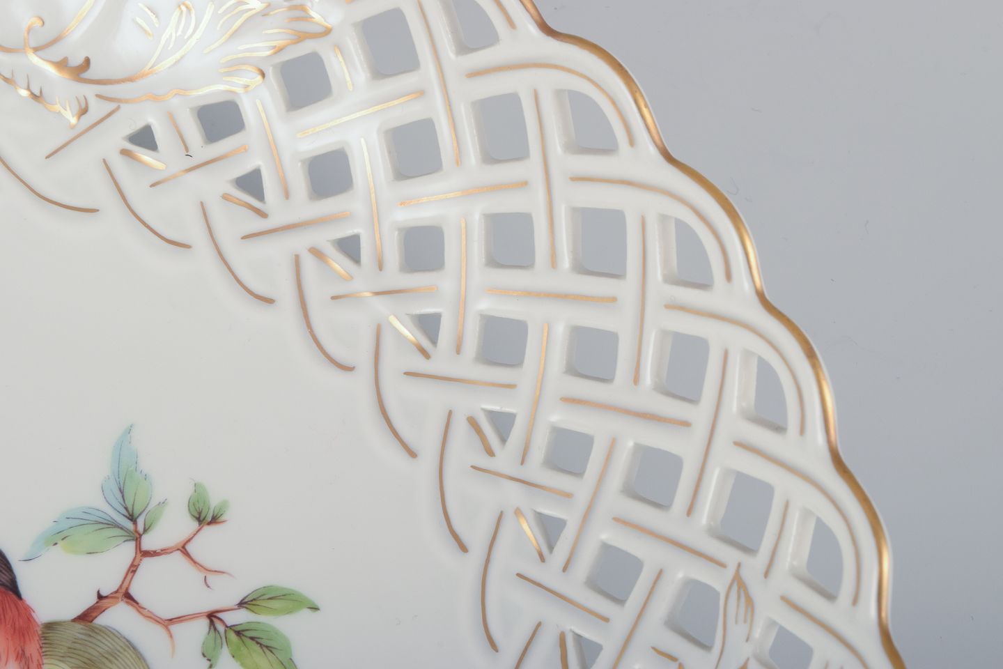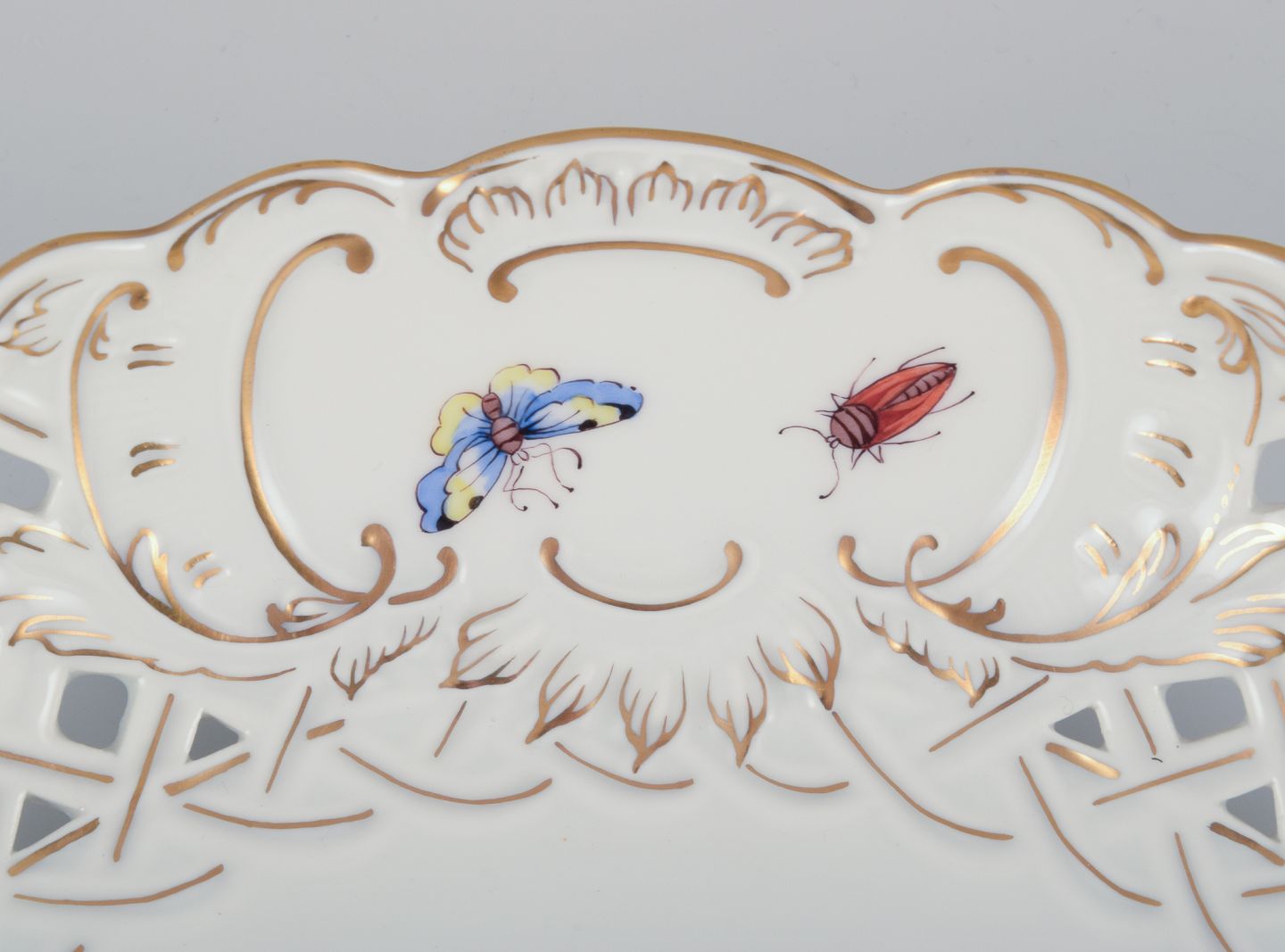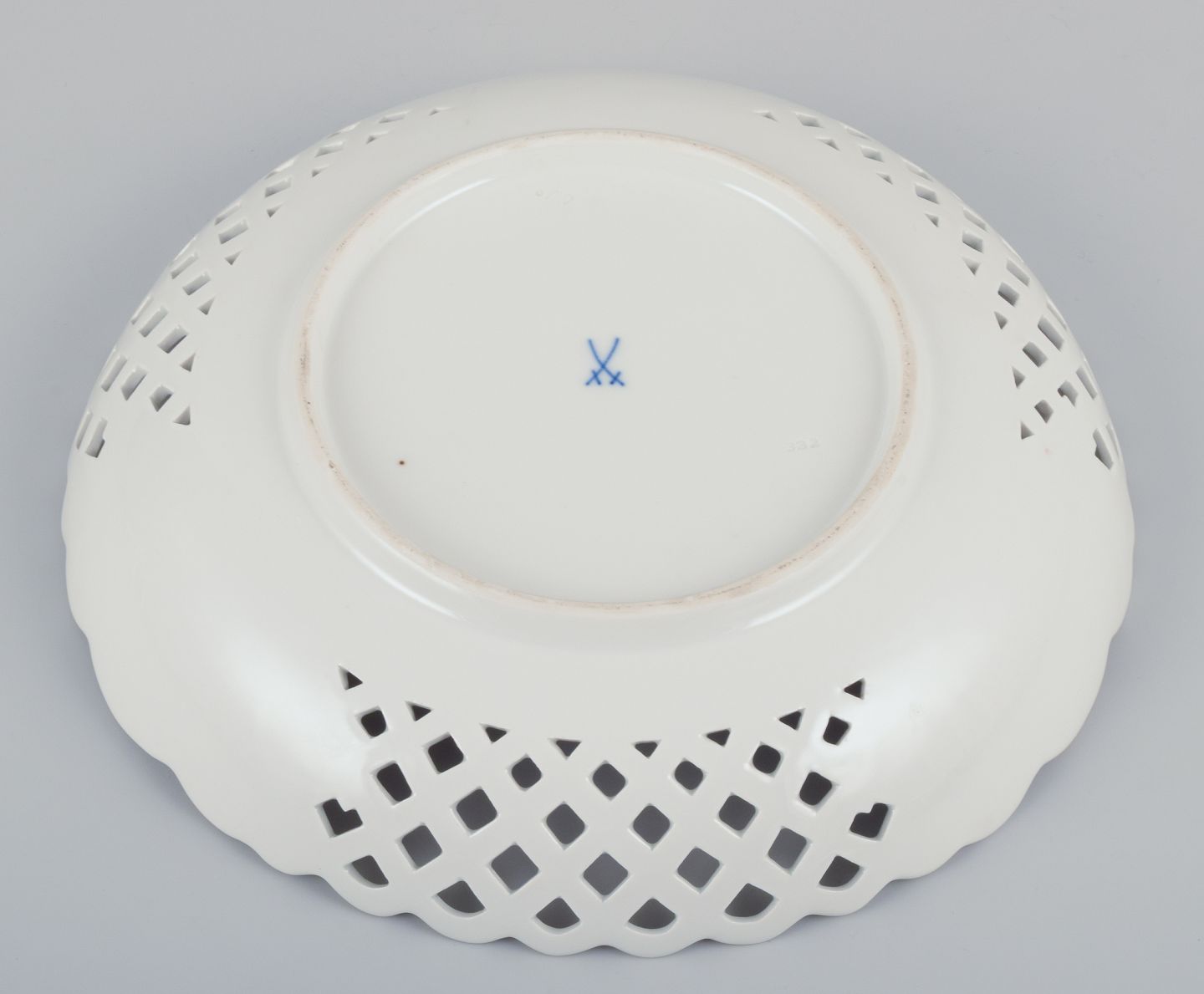 Meissen, Tyskland. Stor gennembrudt skål. Håndmalet med fuglemotiv og insekter, guldkant.