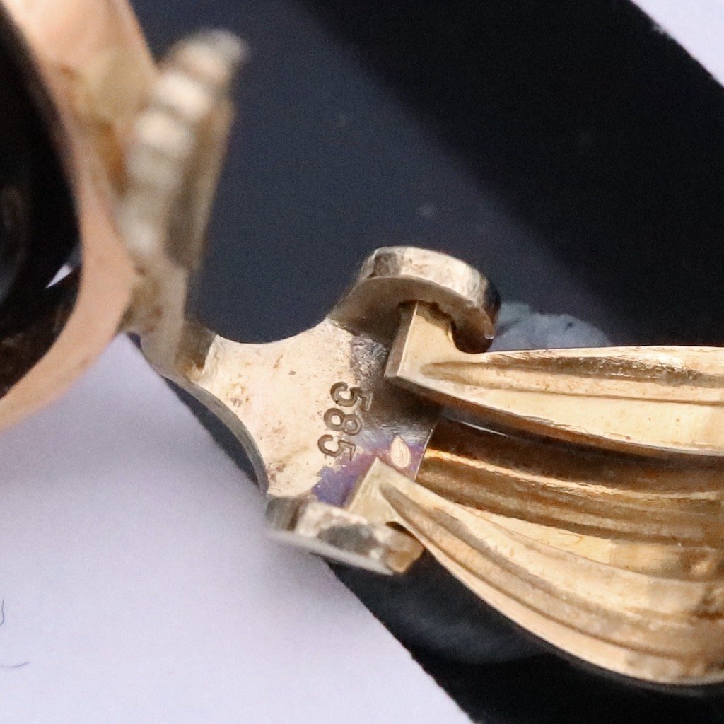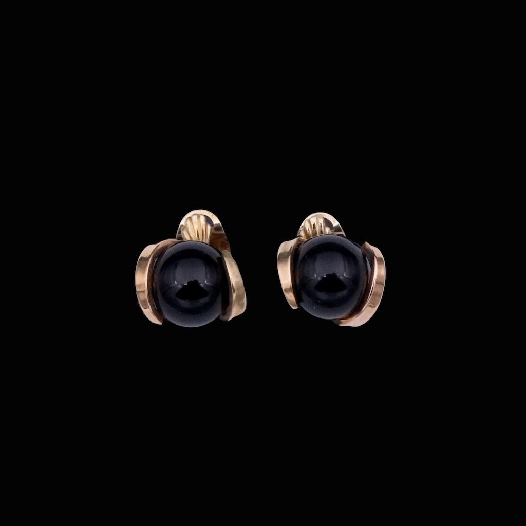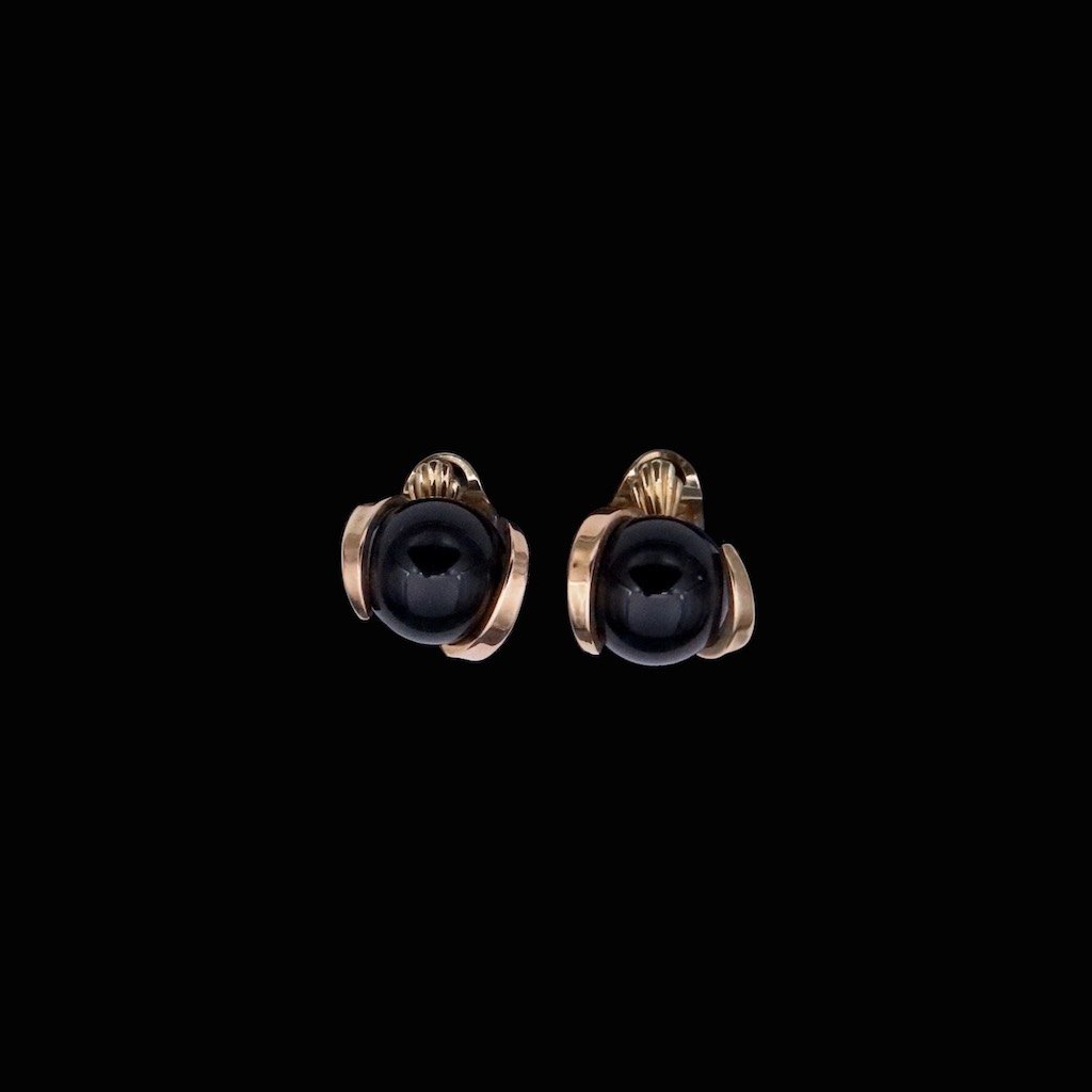 Aage Weimar. Øreklips i 14k guld med onyx.