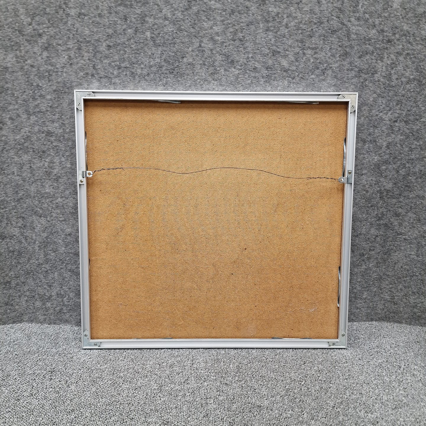 Indrammet litografi i passepartout med aluminiumsramme. Det farverige tryk Fabulering er fremstillet i samarbejde med Nordtek i 1988 og udgivet i 100 signerede eksemplar