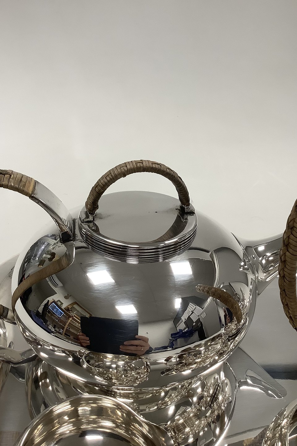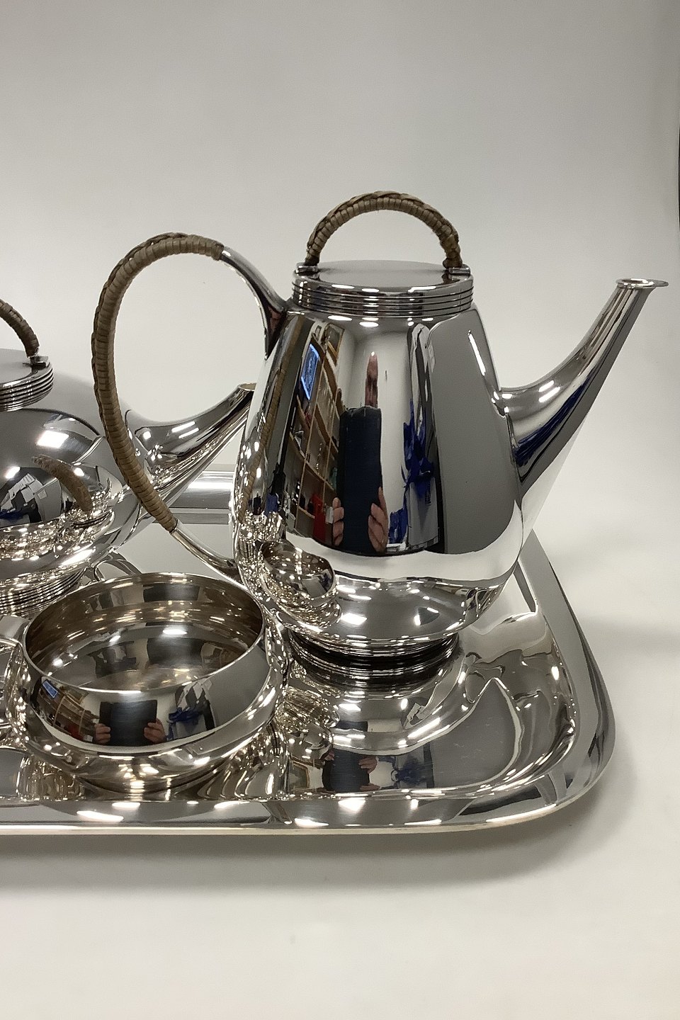 5 Piece Hingelberg Sterling Silver Tea and Coffee Set by Svend Weihrauch with tray