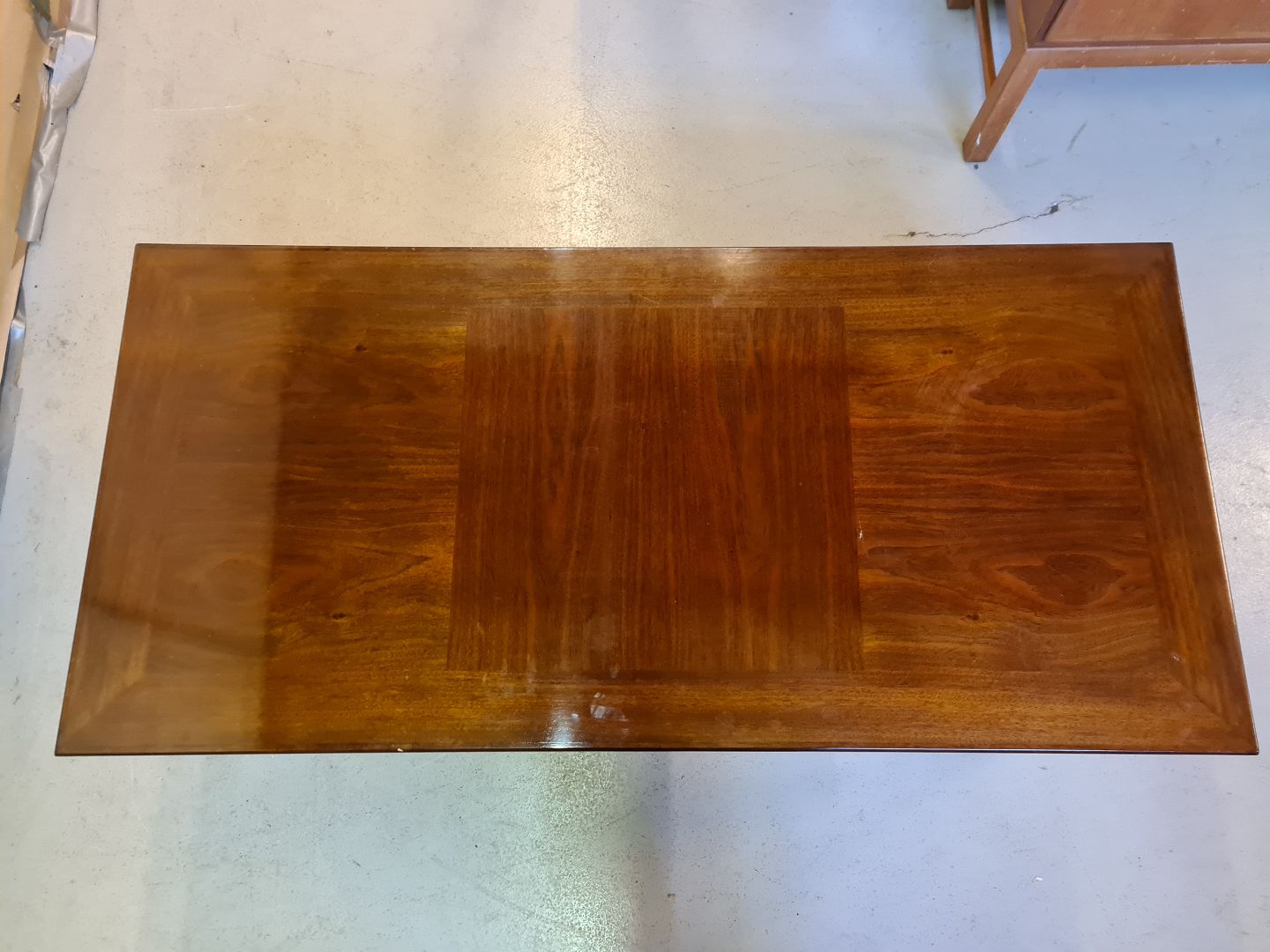 Sofabord i fineret mahogni, fra 1980erne.