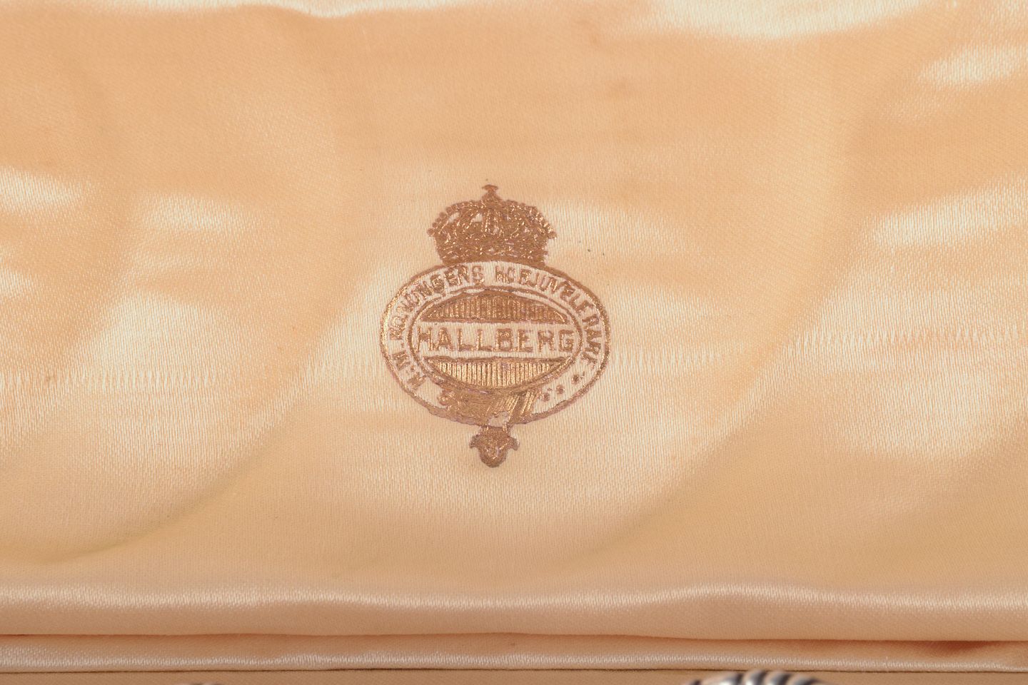 Hallberg, Stockholm, kongelig svensk hofleverandør. Et sæt på tolv glasbakker i 830 sølv. Art Deco.