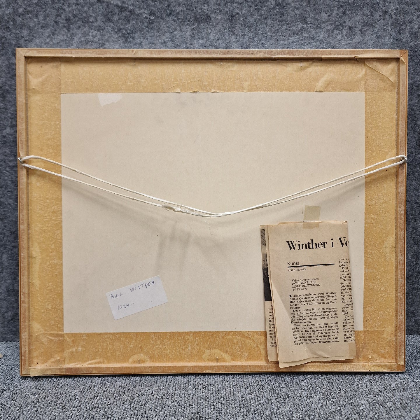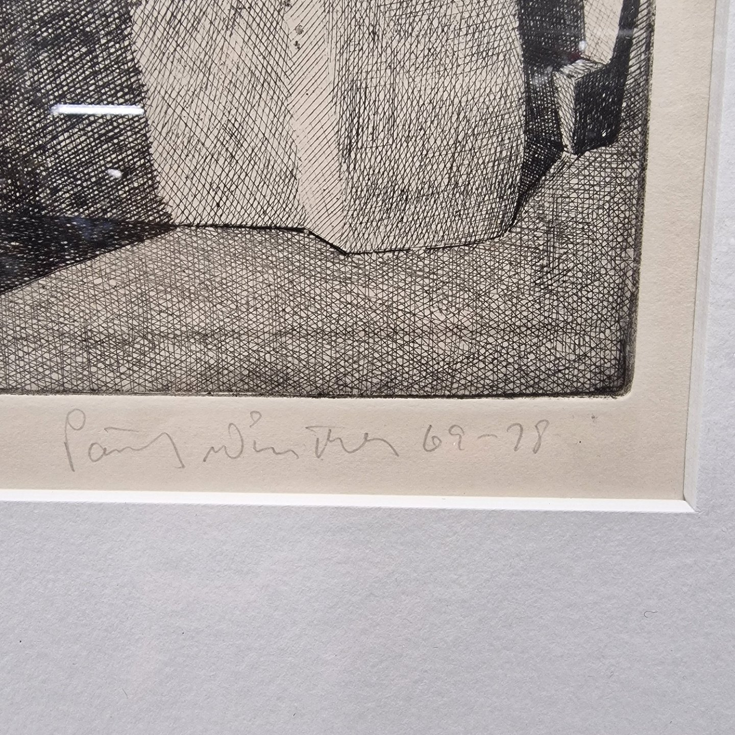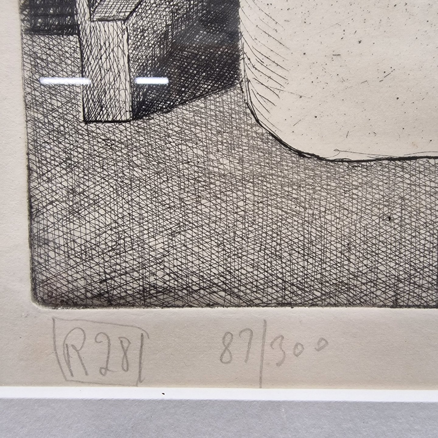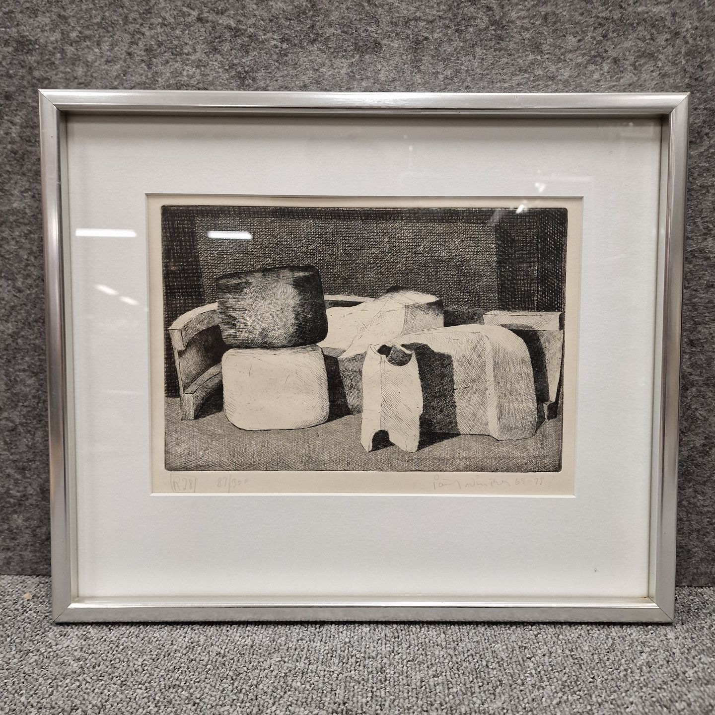 Indrammet litografi i passepartout med træramme. Abstrakt tryk i sort og hvid med organiske former no 87/300