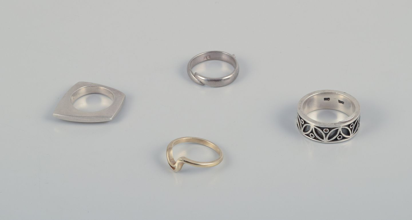 N. E. From med flere danske sølvsmede. Fire fingerringe i sterlingsølv.