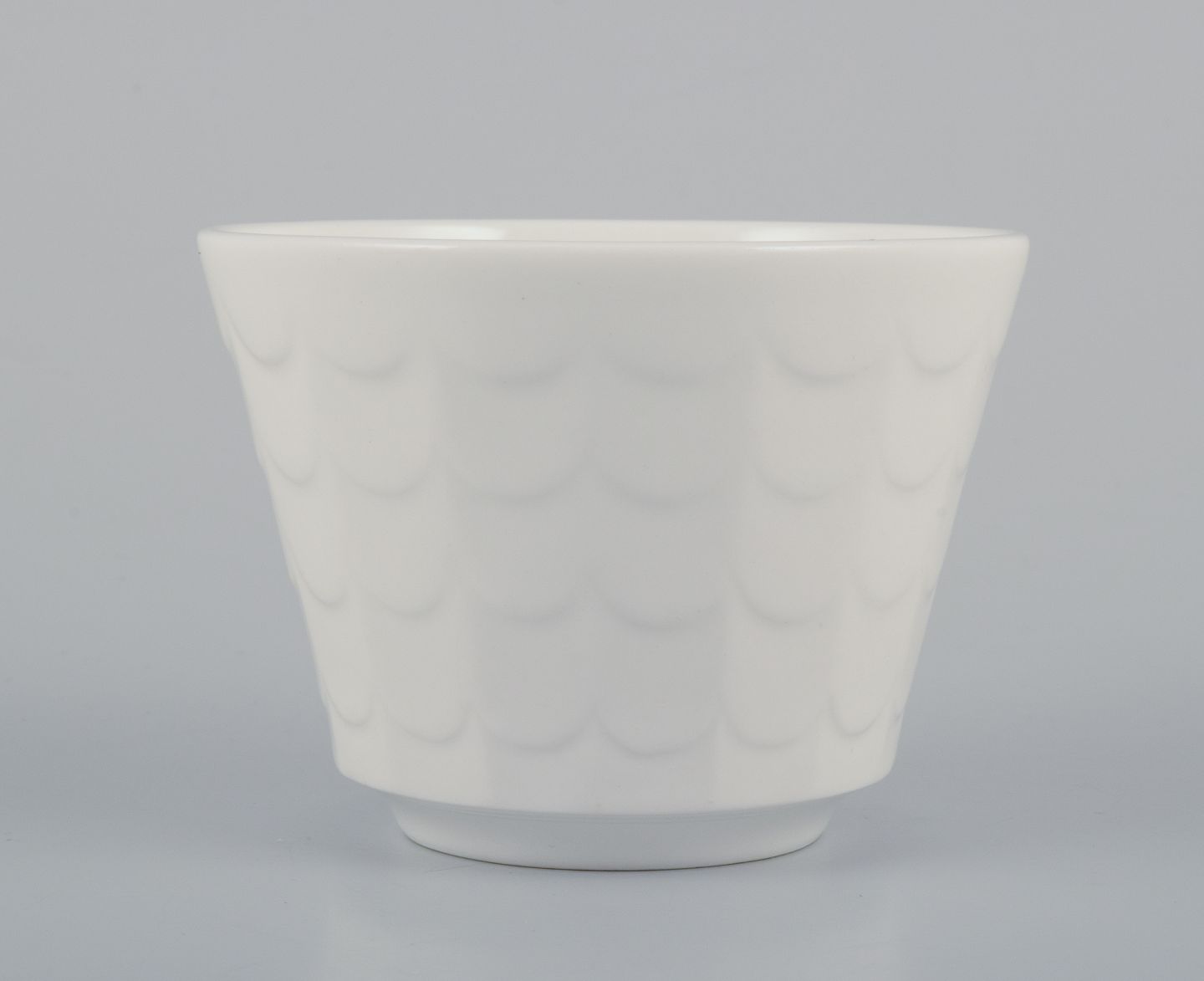 Wilhelm Kåge for Gustavsberg. Seks hvide urtepotteskjulere i porcelæn. Svensk design.