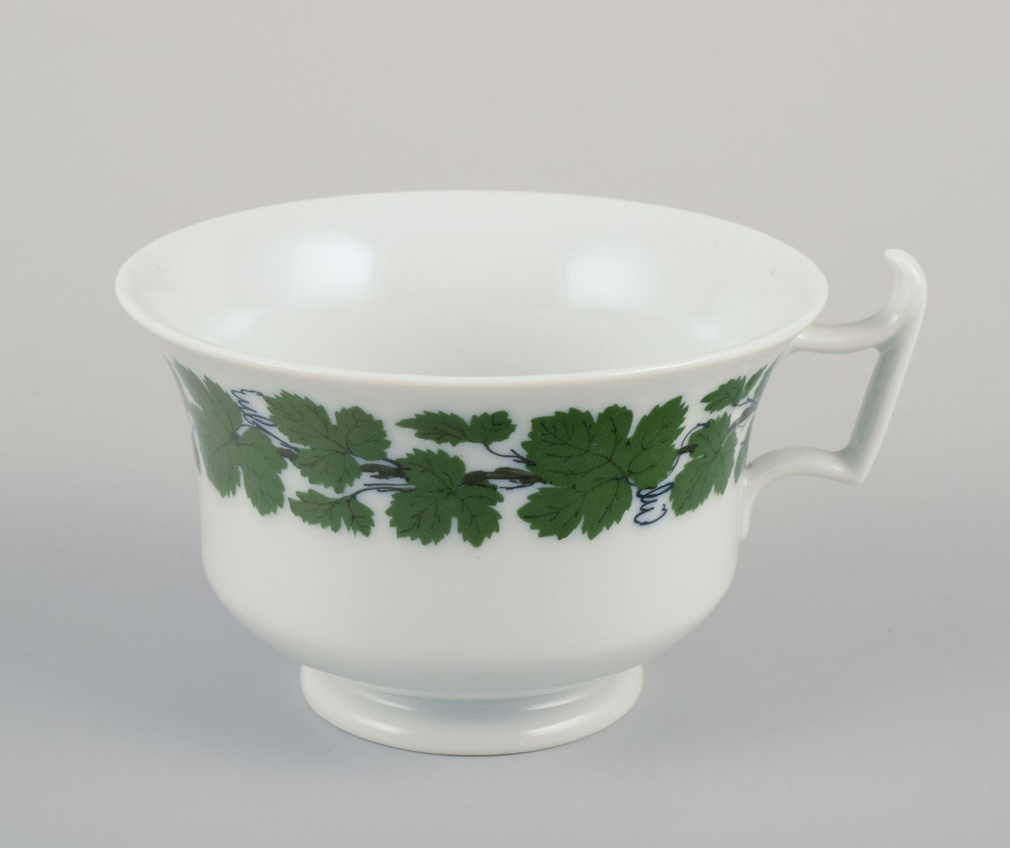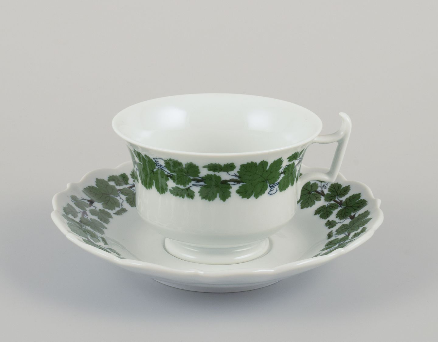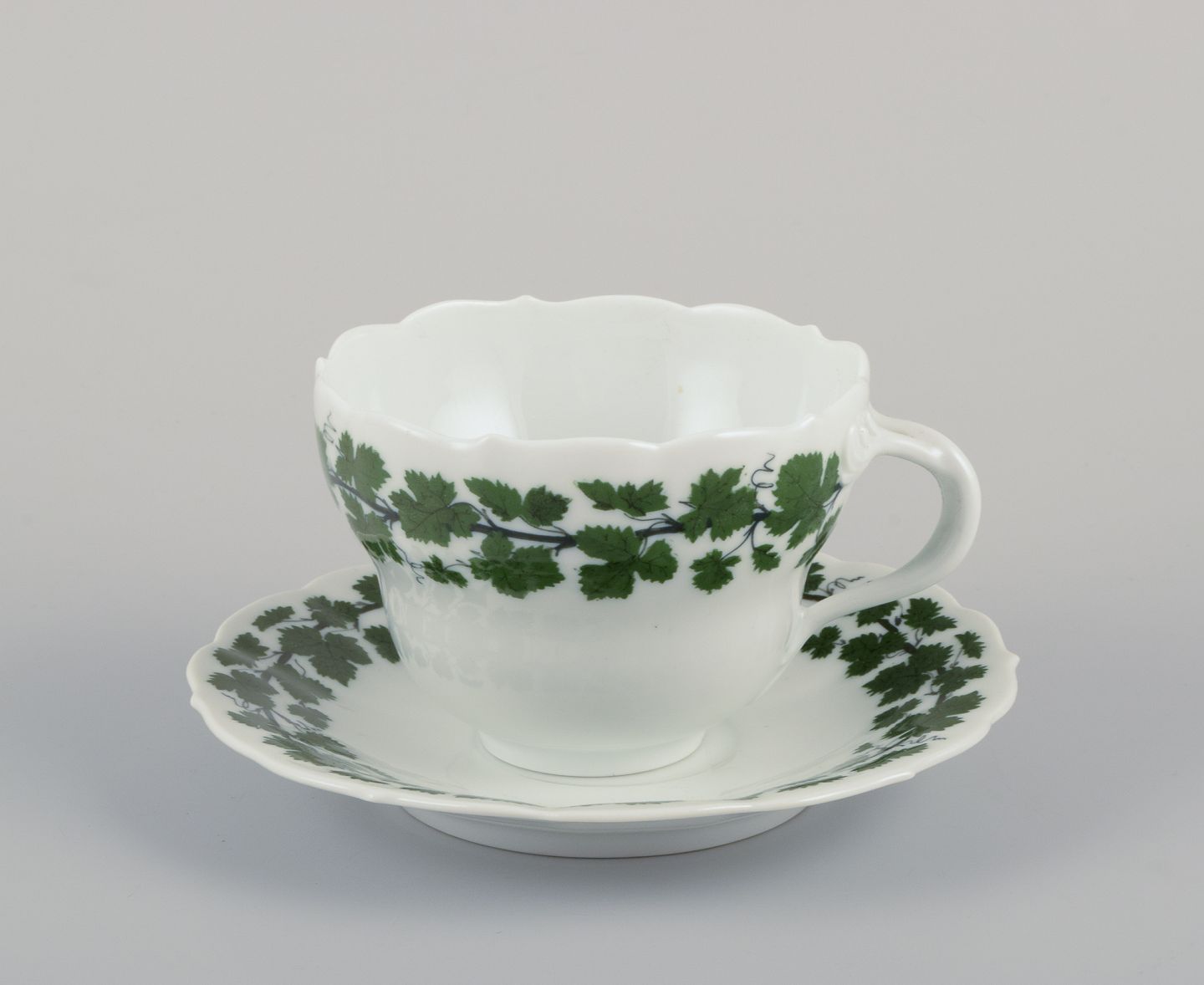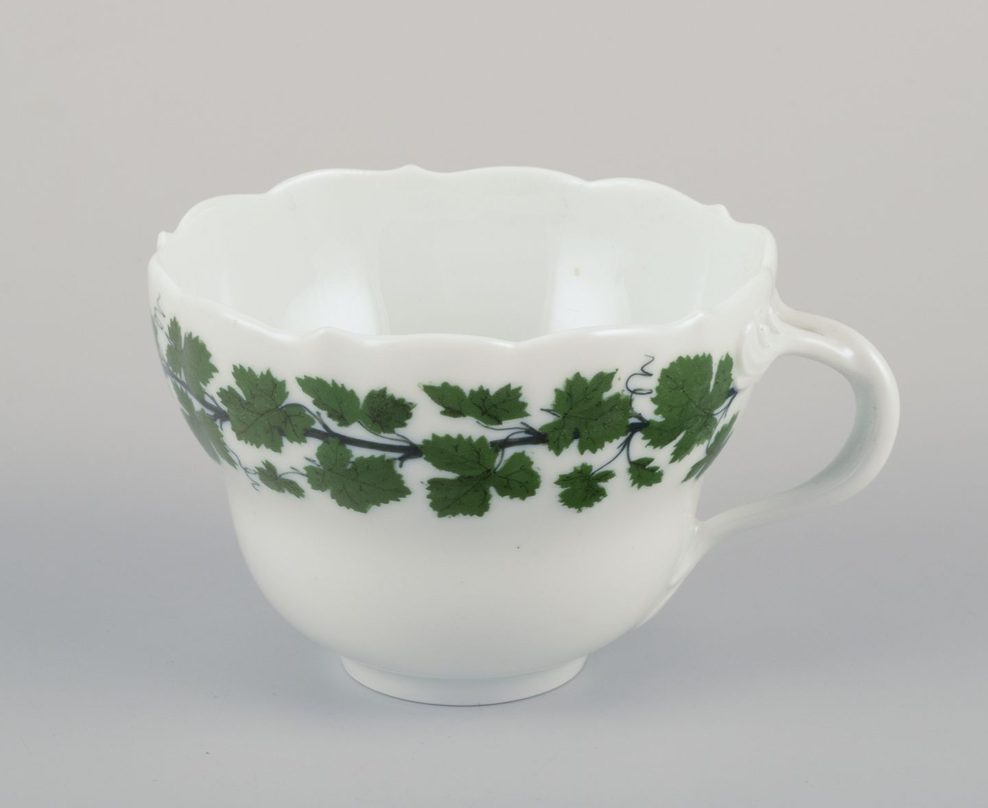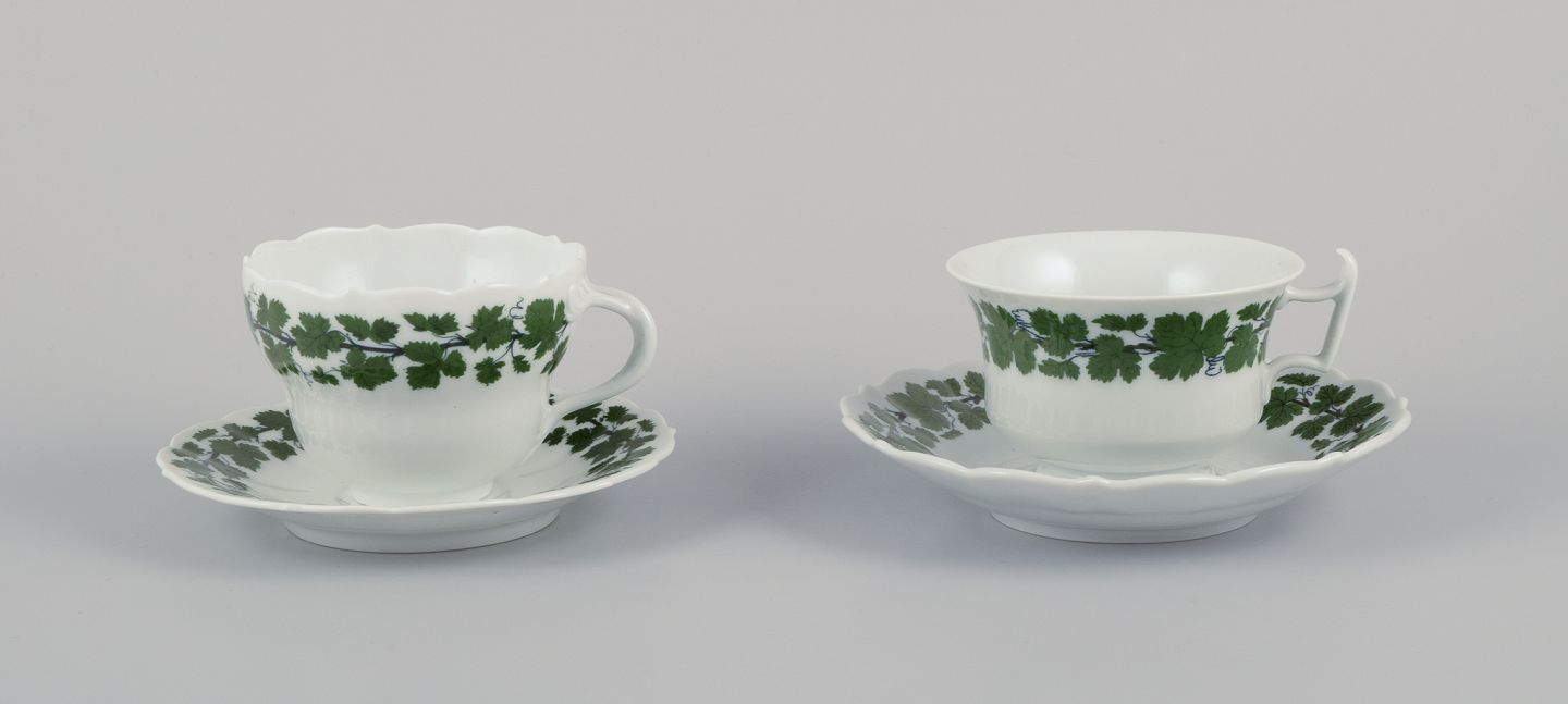 Meissen, Tyskland, Green Ivy Vine, to store morgenkopper med tilhørende underkopper. Håndmalet.