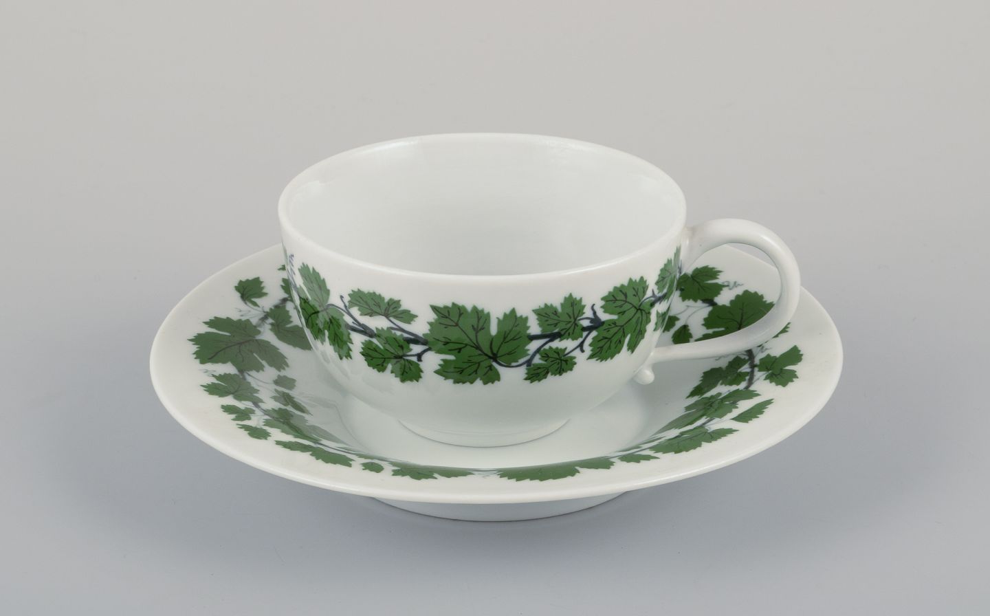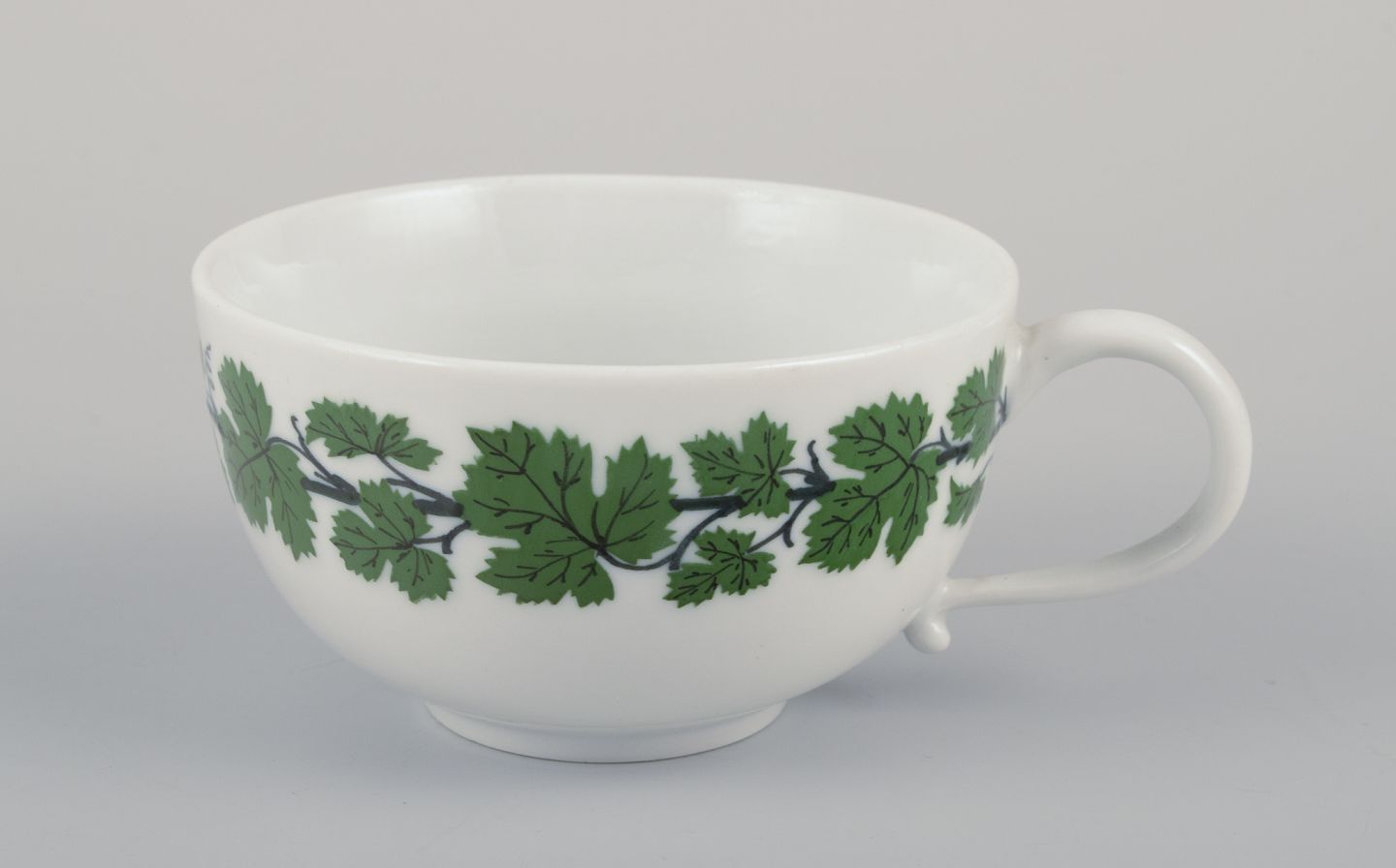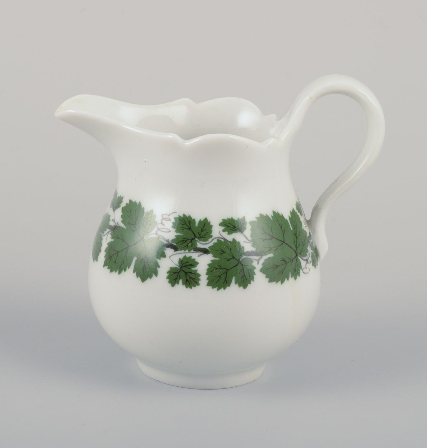 Meissen, Tyskland, Green Ivy Vine, to kaffekopper med tilhørende underkopper samt flødekande. Håndmalet.