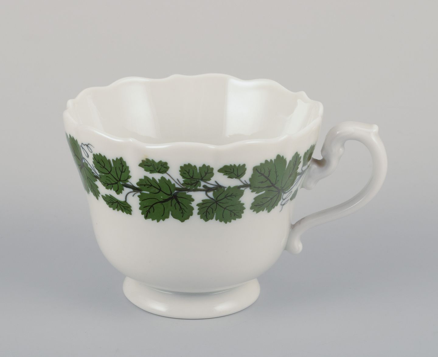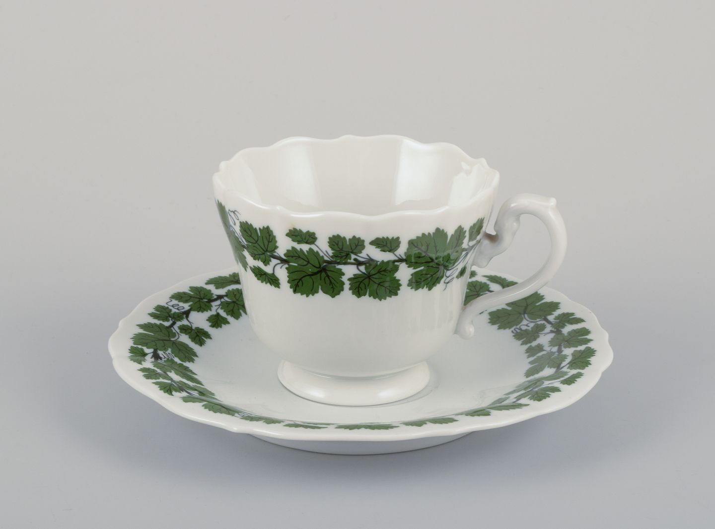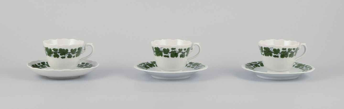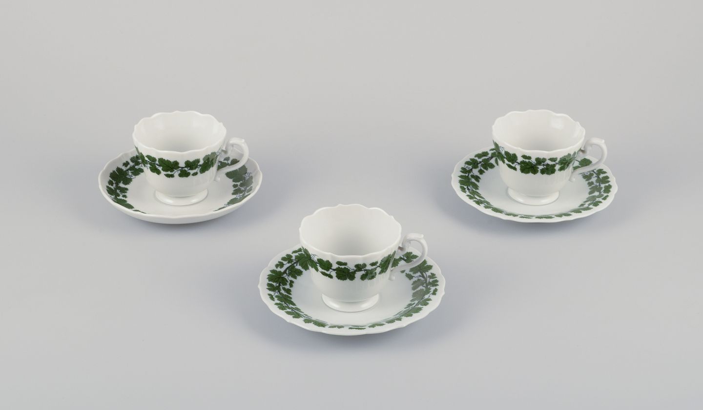 Meissen, Tyskland, Green Ivy Vine, tre kaffekopper med tilhørende underkopper. Håndmalet.