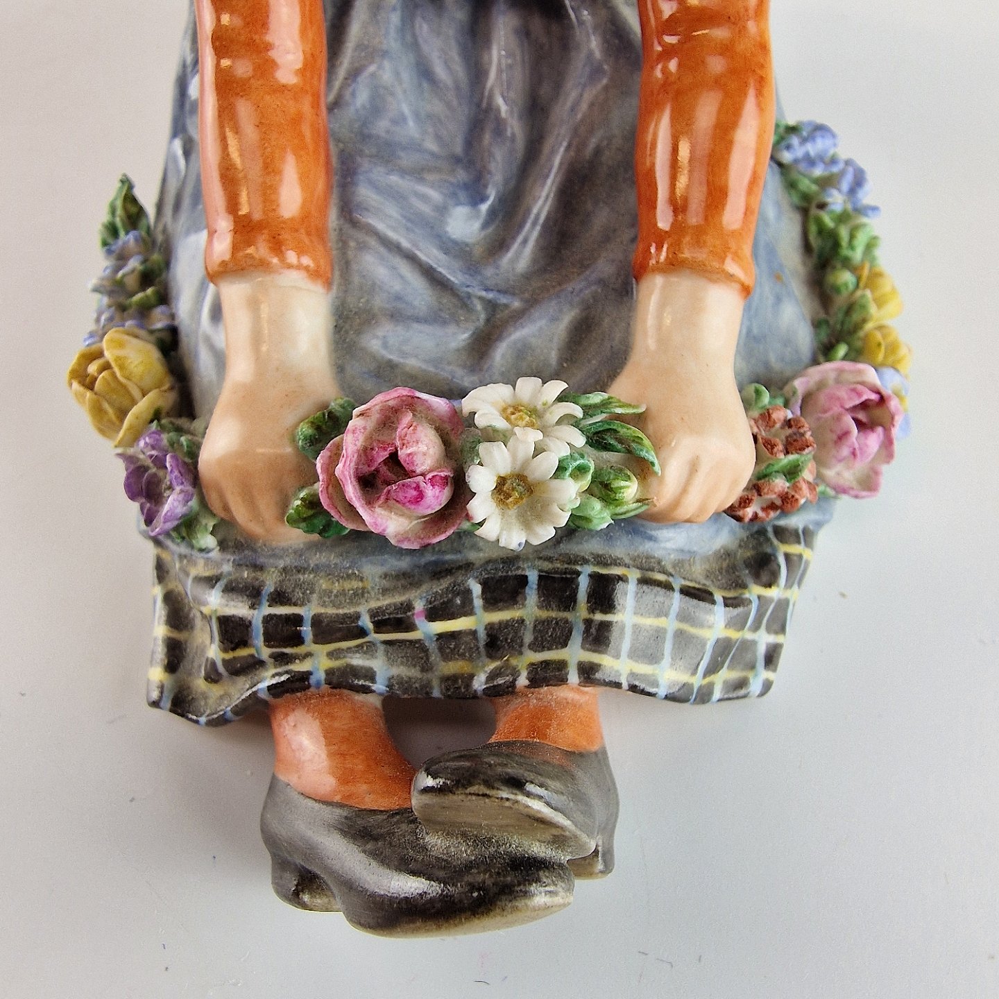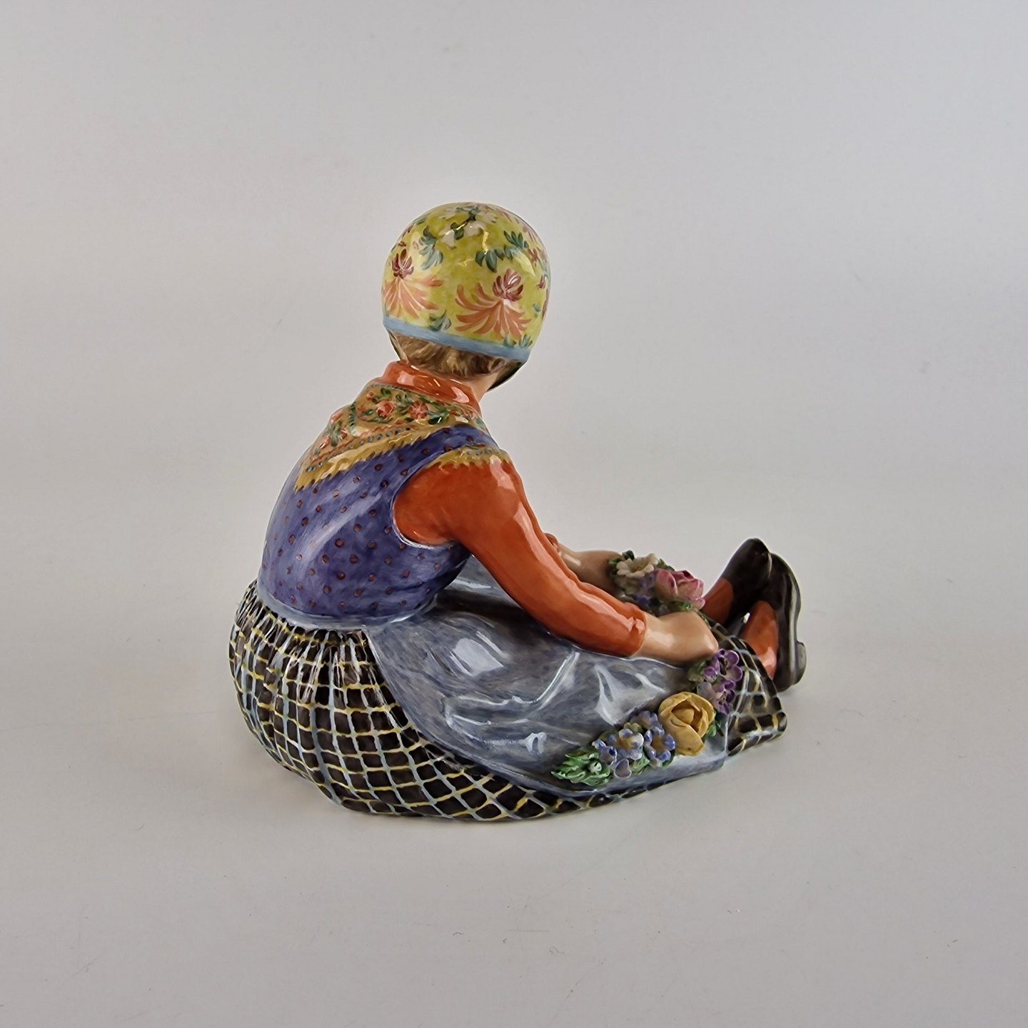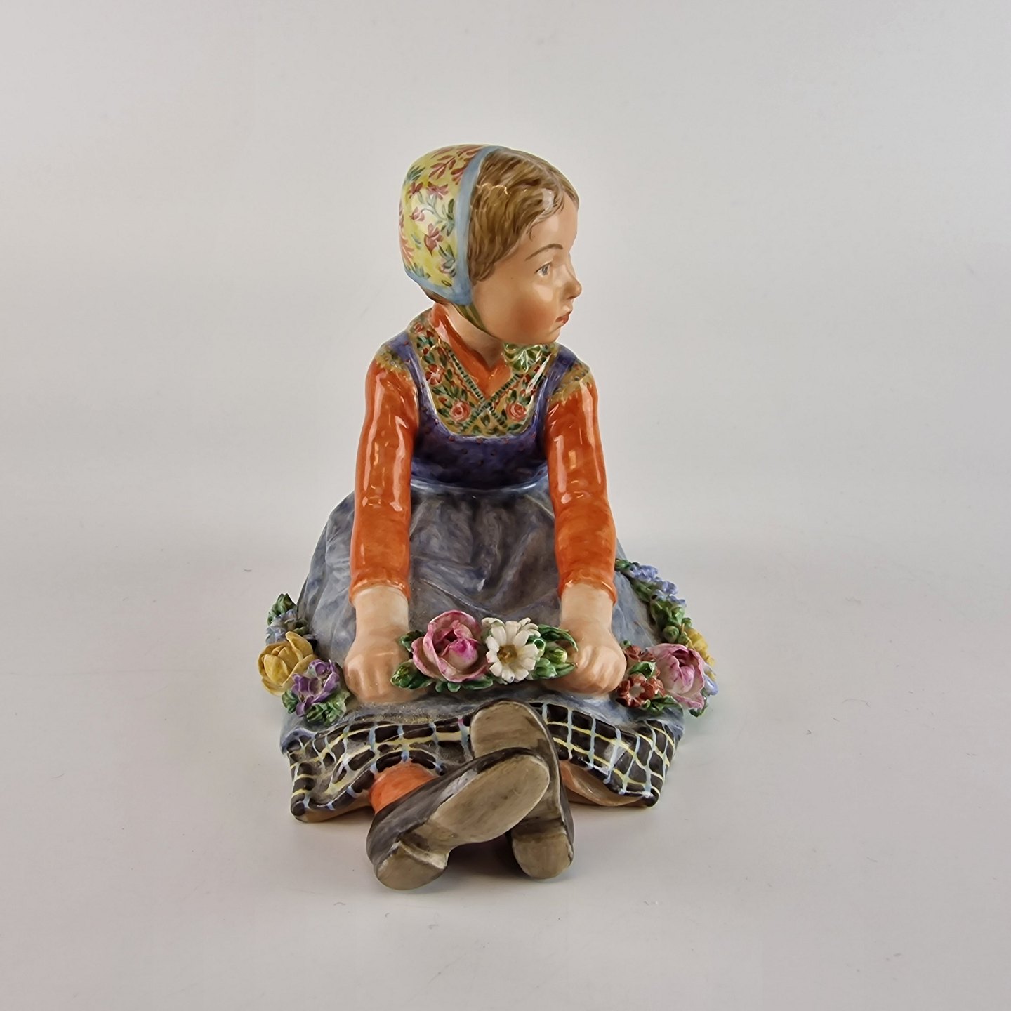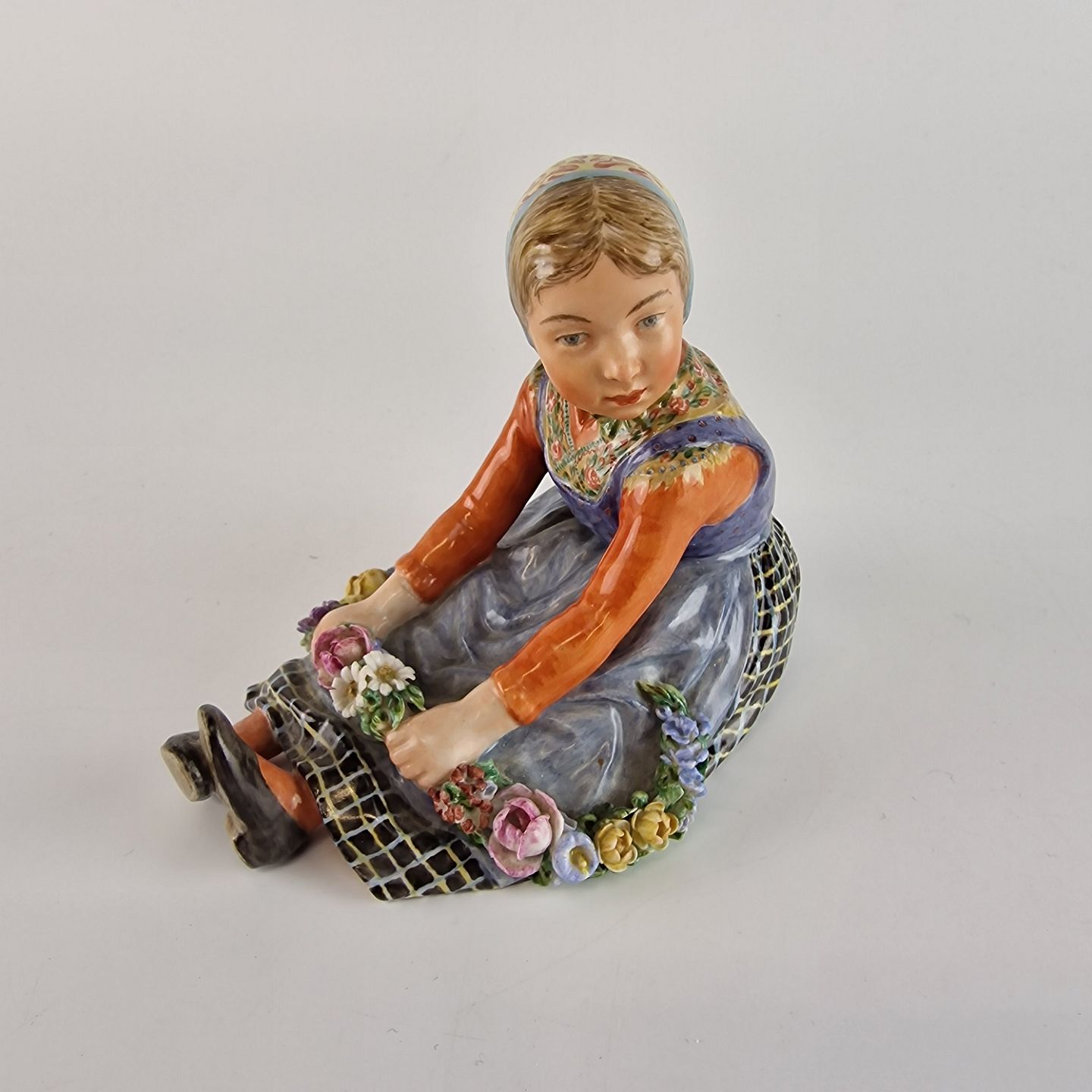 Kongelig håndmalet porcelænsfigur af en pige med blomsterkrans. Nr 12421