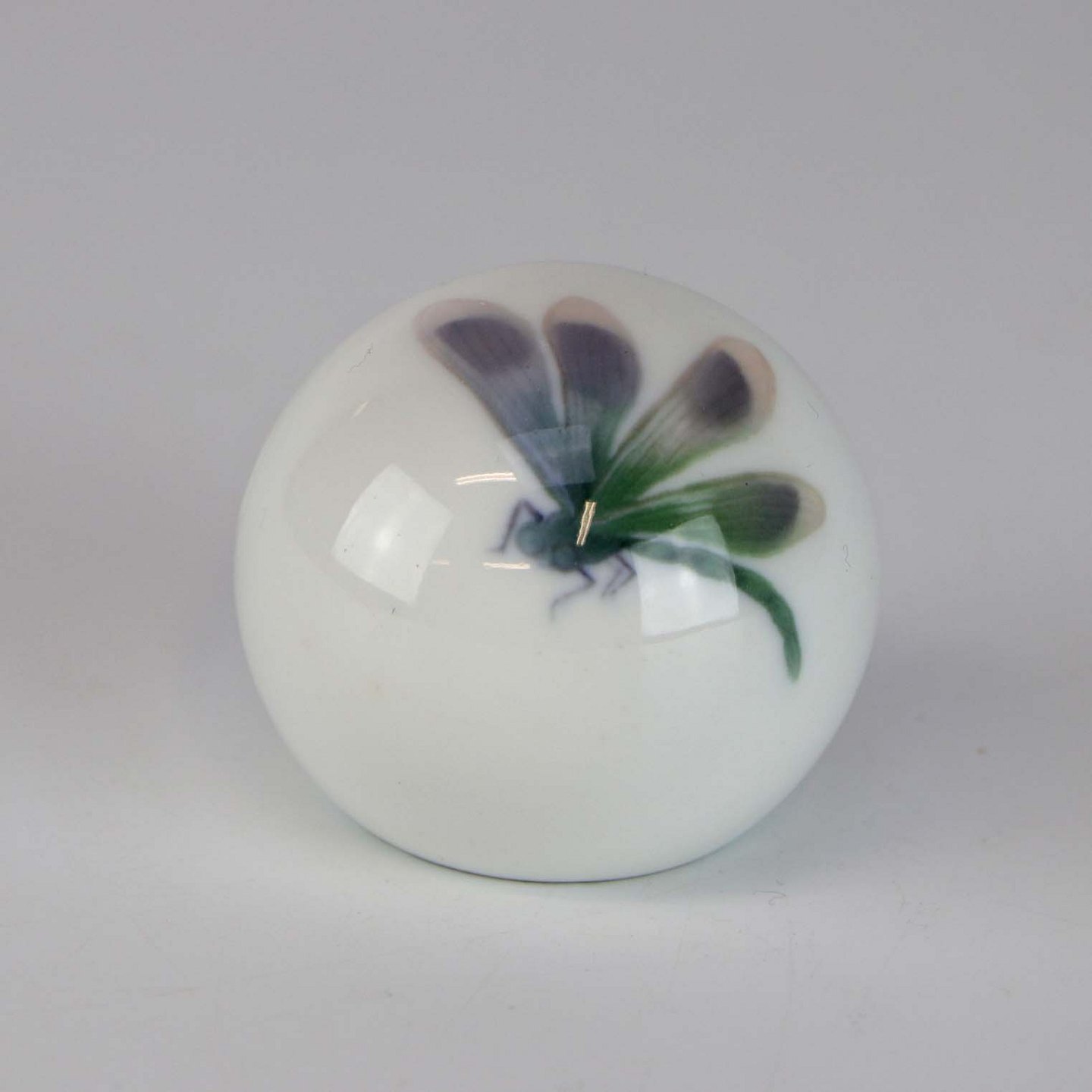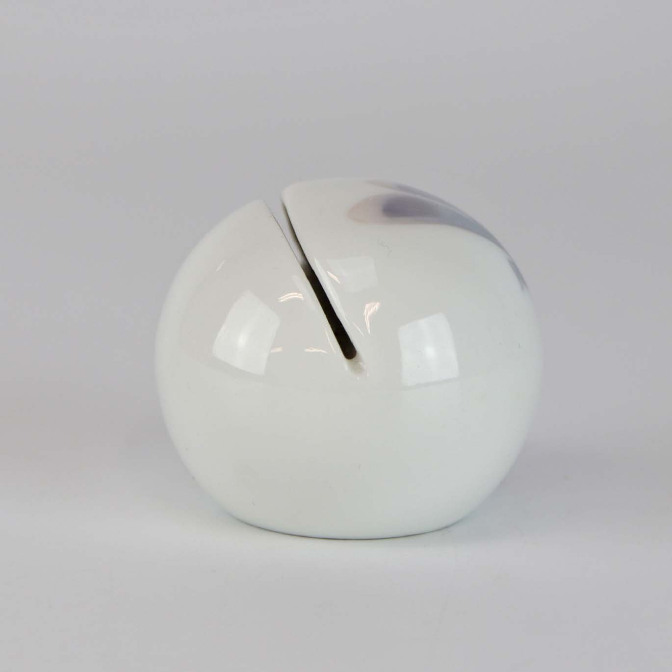 Bordkortholder af porcelæn. Hvidglaseret og dekoreret med en guldsmed