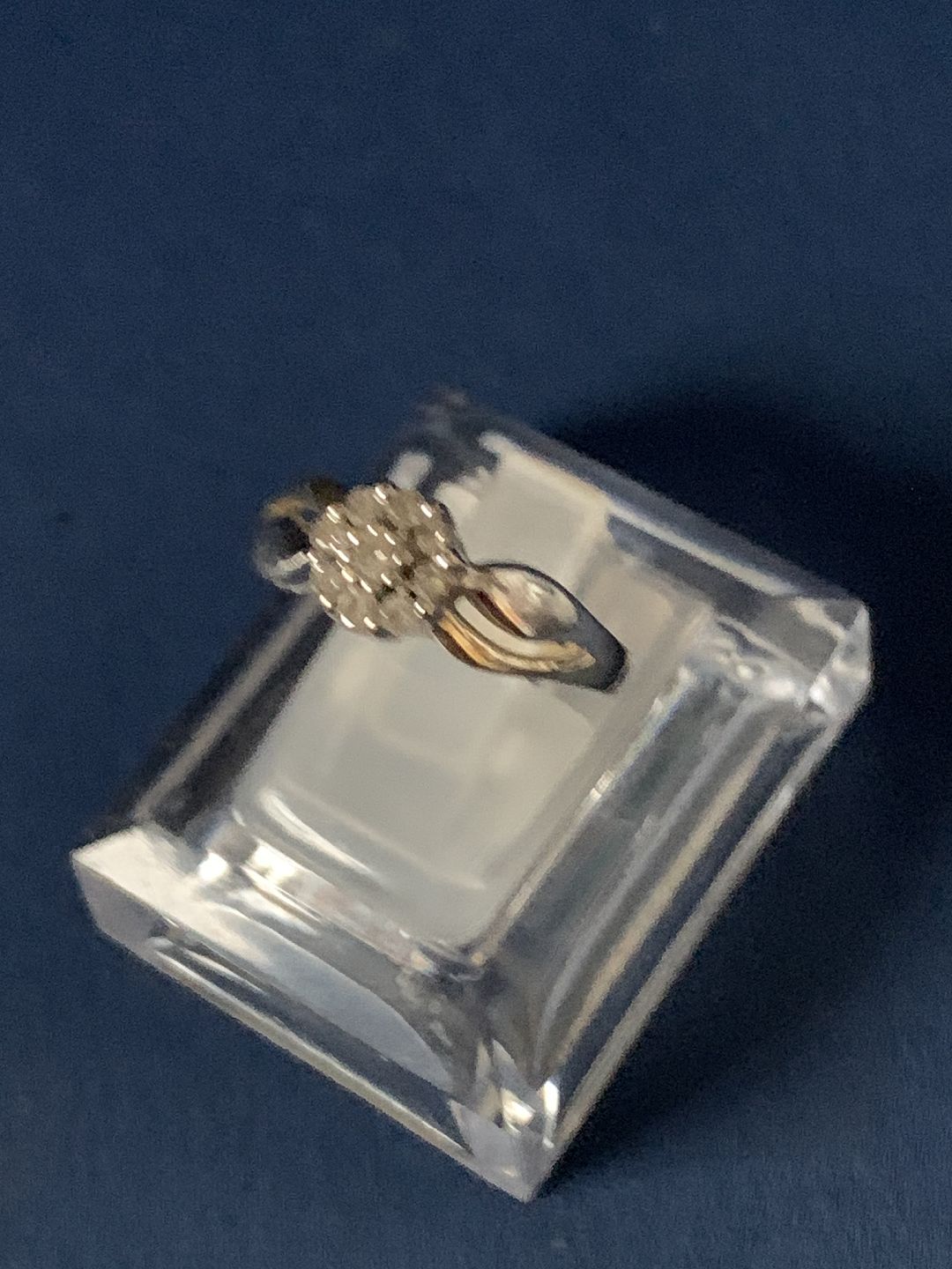 Damering i 10 karat rød- og hvidguld, samt brillanter. Stemplet 10 K. Størrelse 55