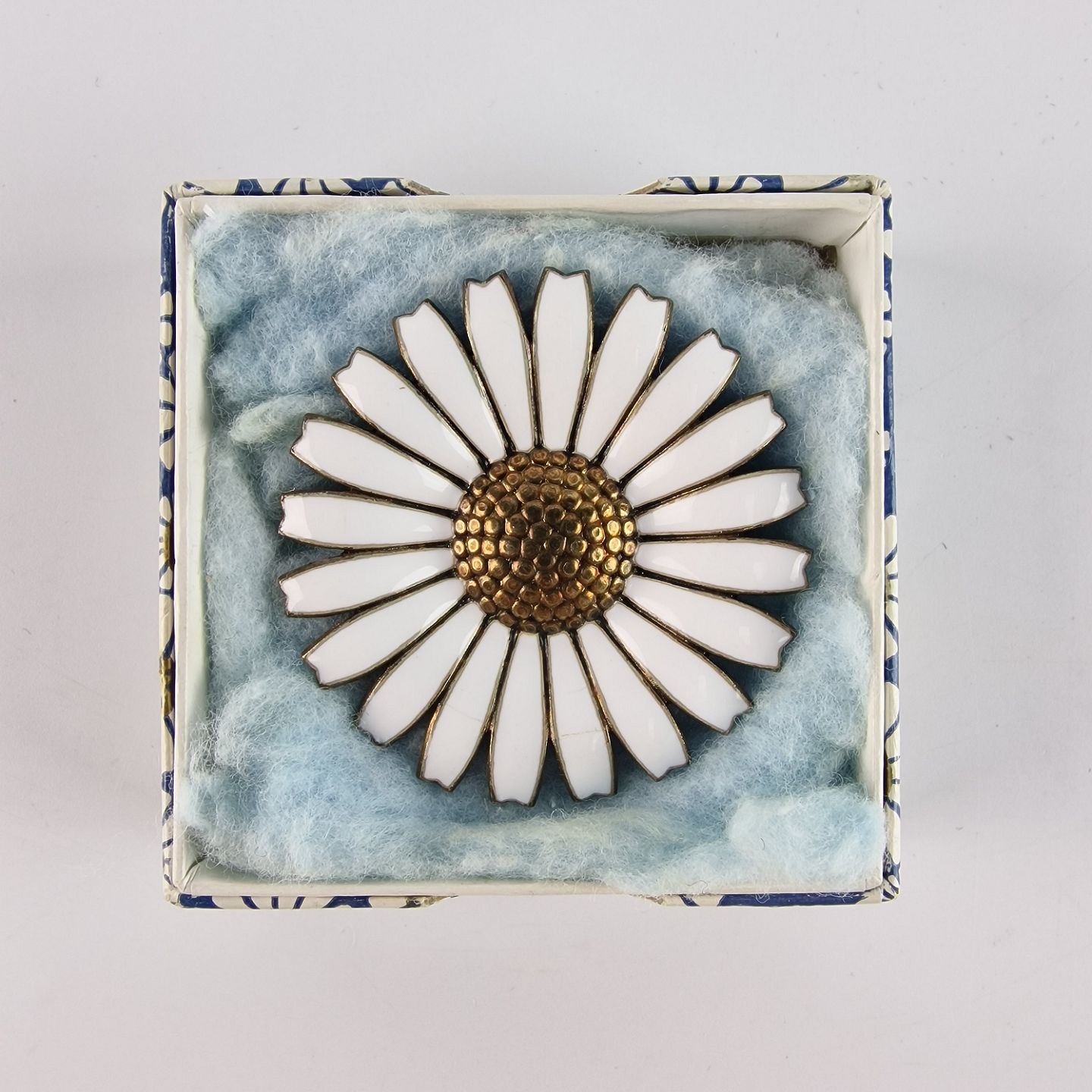 Marguerit broche af forgyldt sterlingsølv. Leveres i original æske