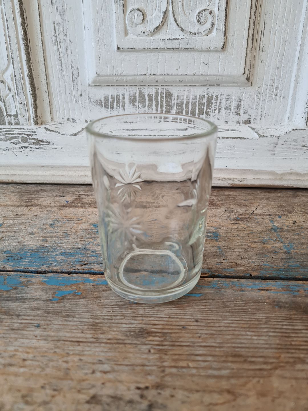 Vandglas dekoreret med måne og stjerner udført i presset glas