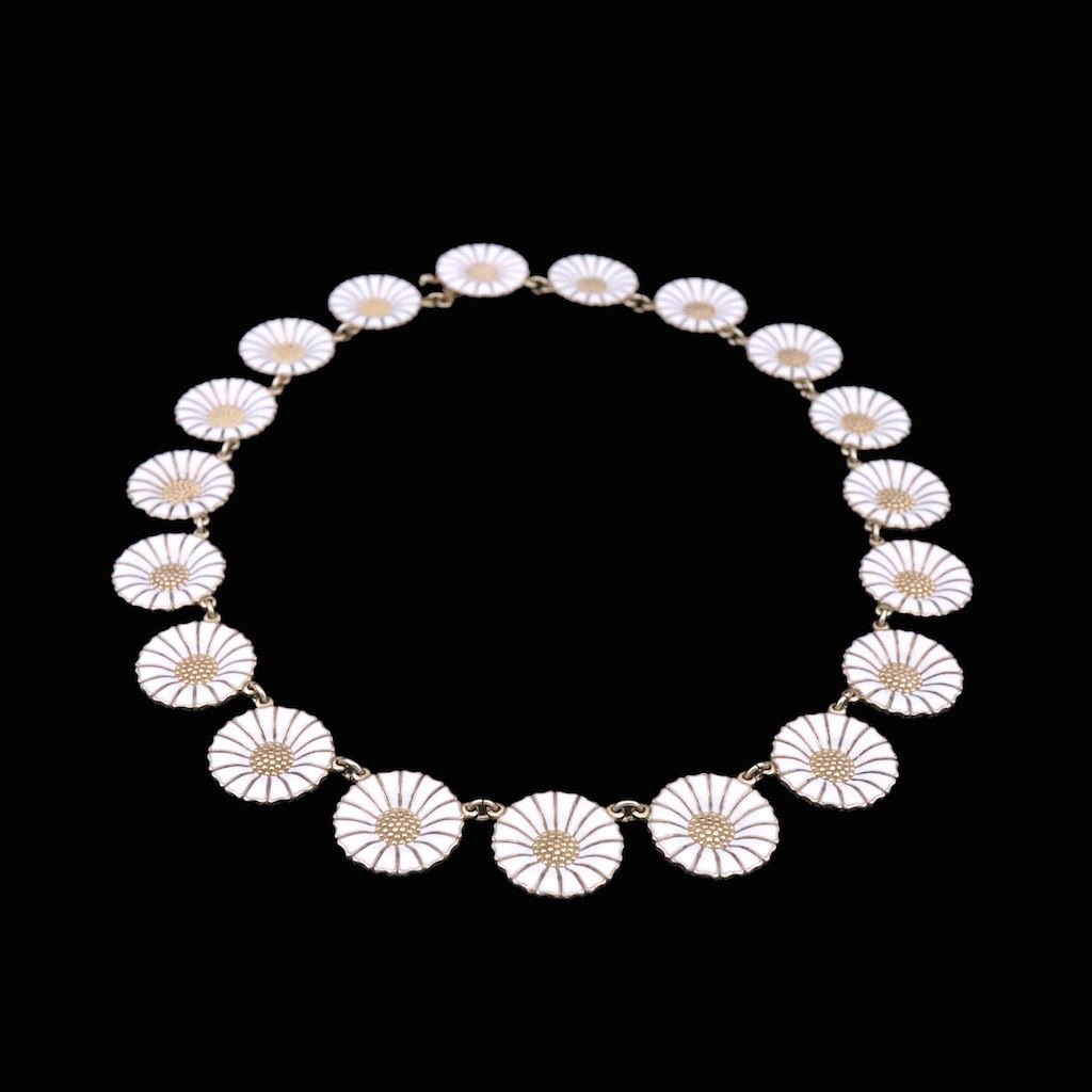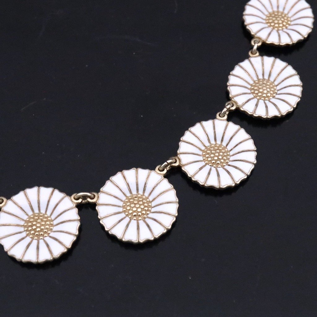 A. Michelsen. Marguerit / Daisy Halskæde i forgyldt sterling sølv og hvid emalje. 18mm.