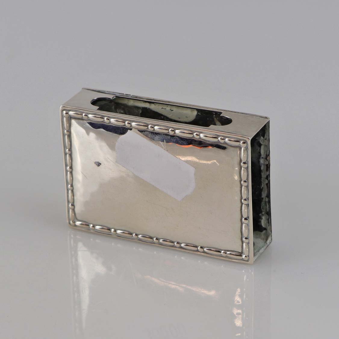 Tændstik etui i tre tårnet sølv med indgraveringen Ellen Møller, Sorø