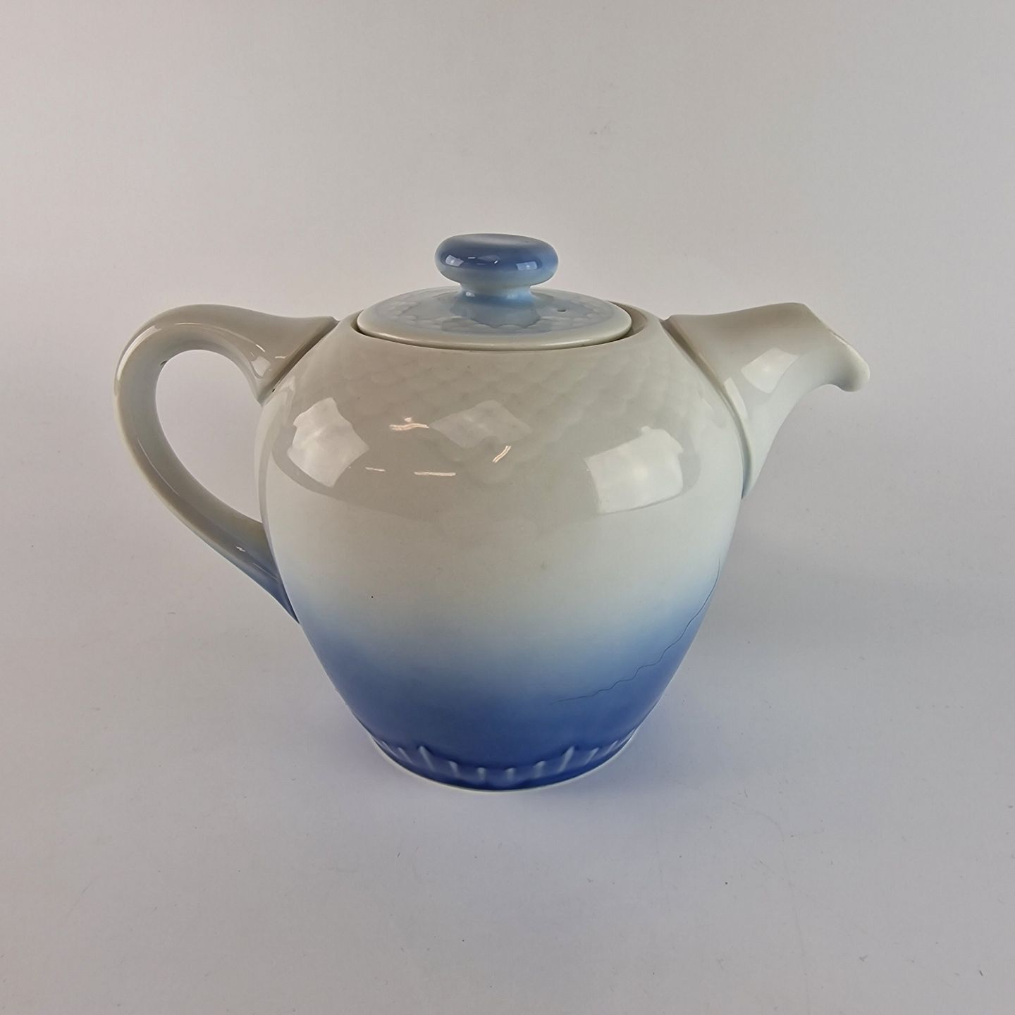 Blå tone er fremstillet i hotelporcelæn i blå nuancer og med mønster som skæl