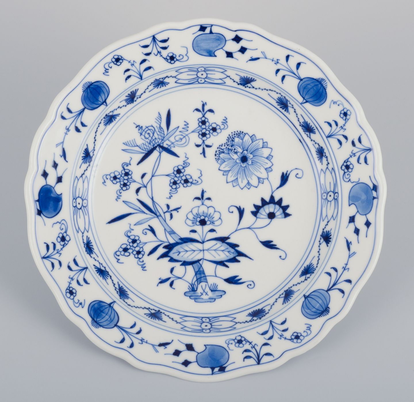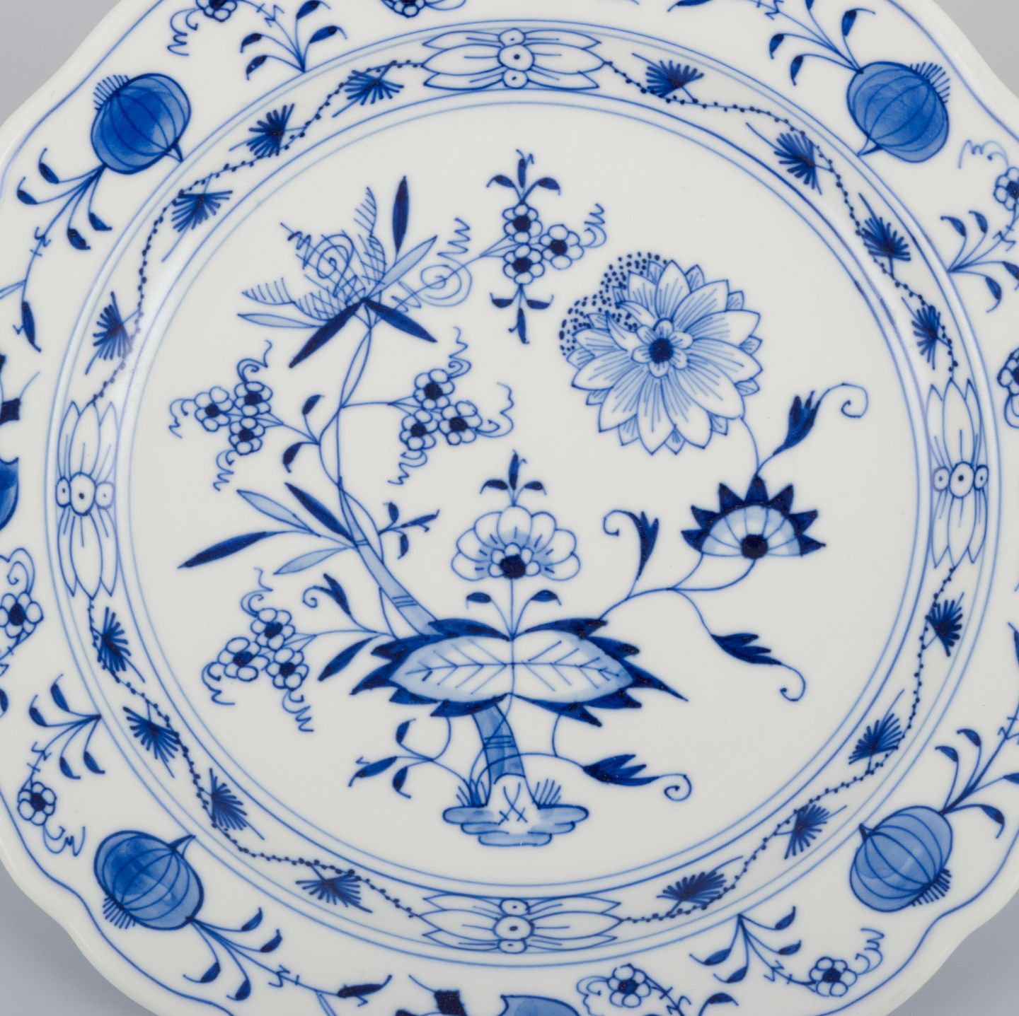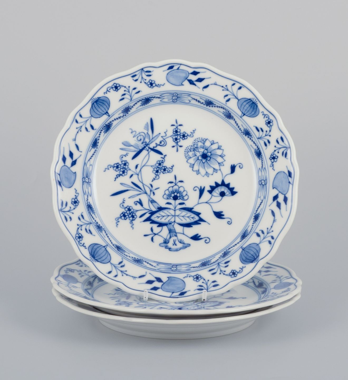 Meissen, Tyskland, tre løgmønstret tallerkner.