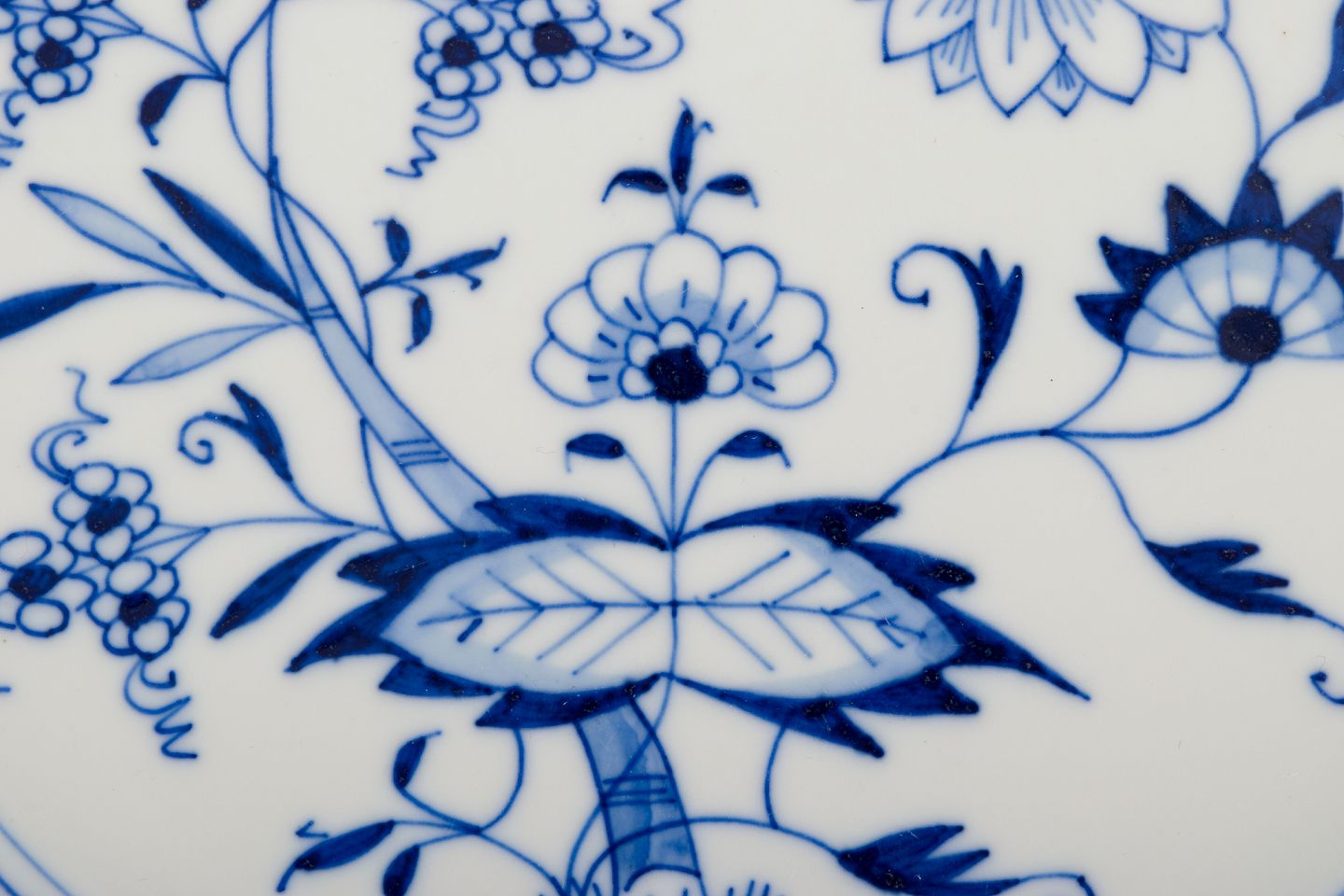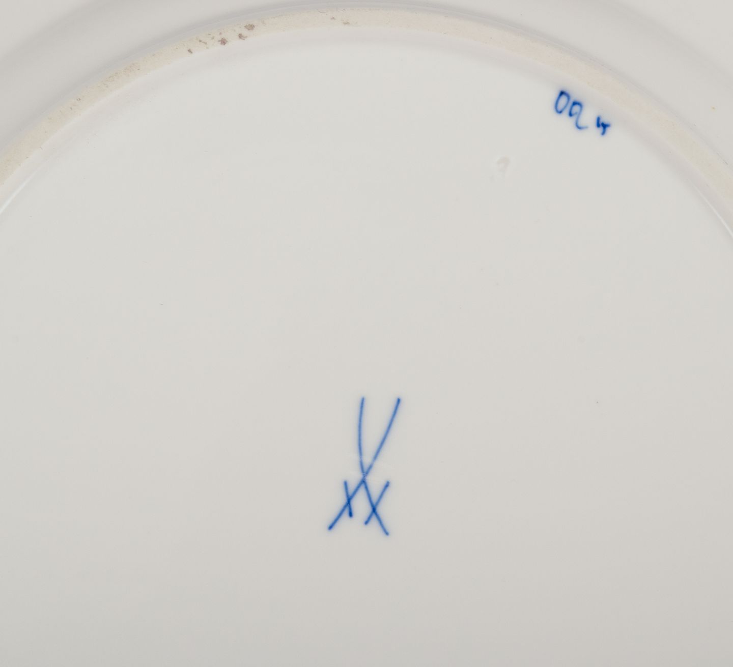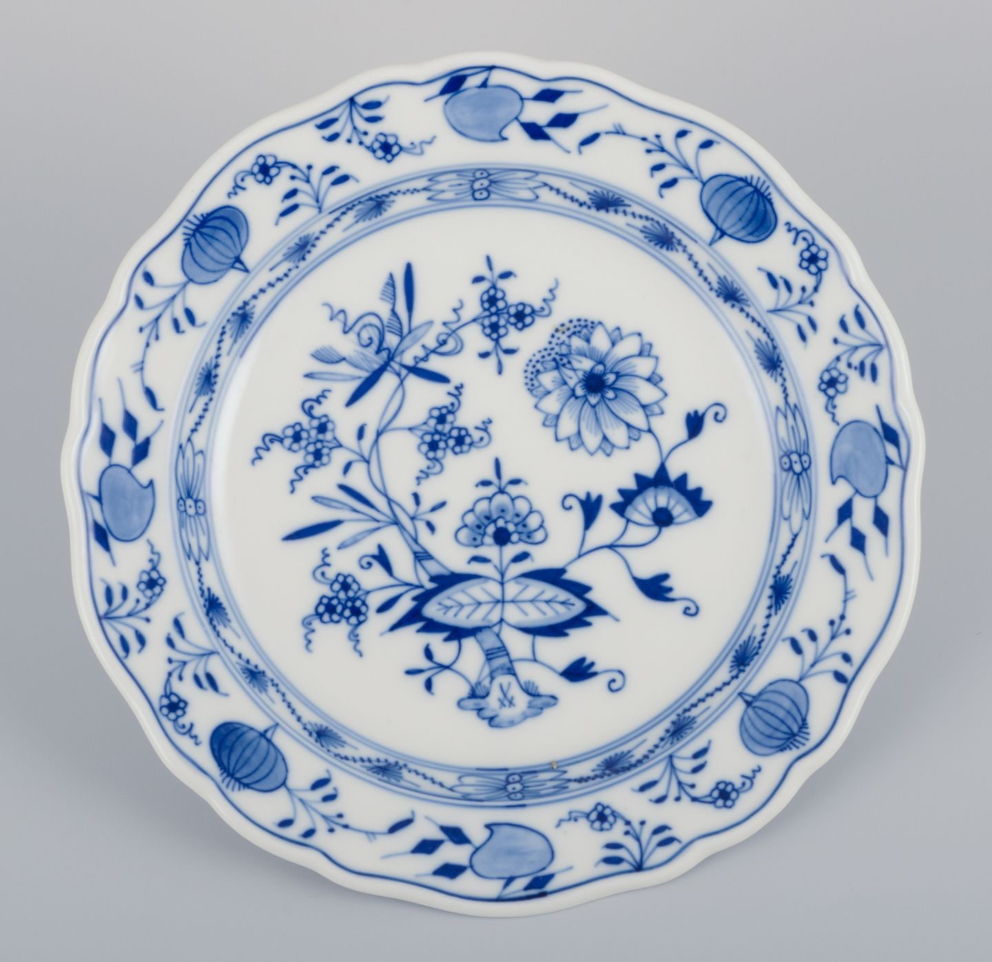 Meissen, Tyskland, tre løgmønstret tallerkner.