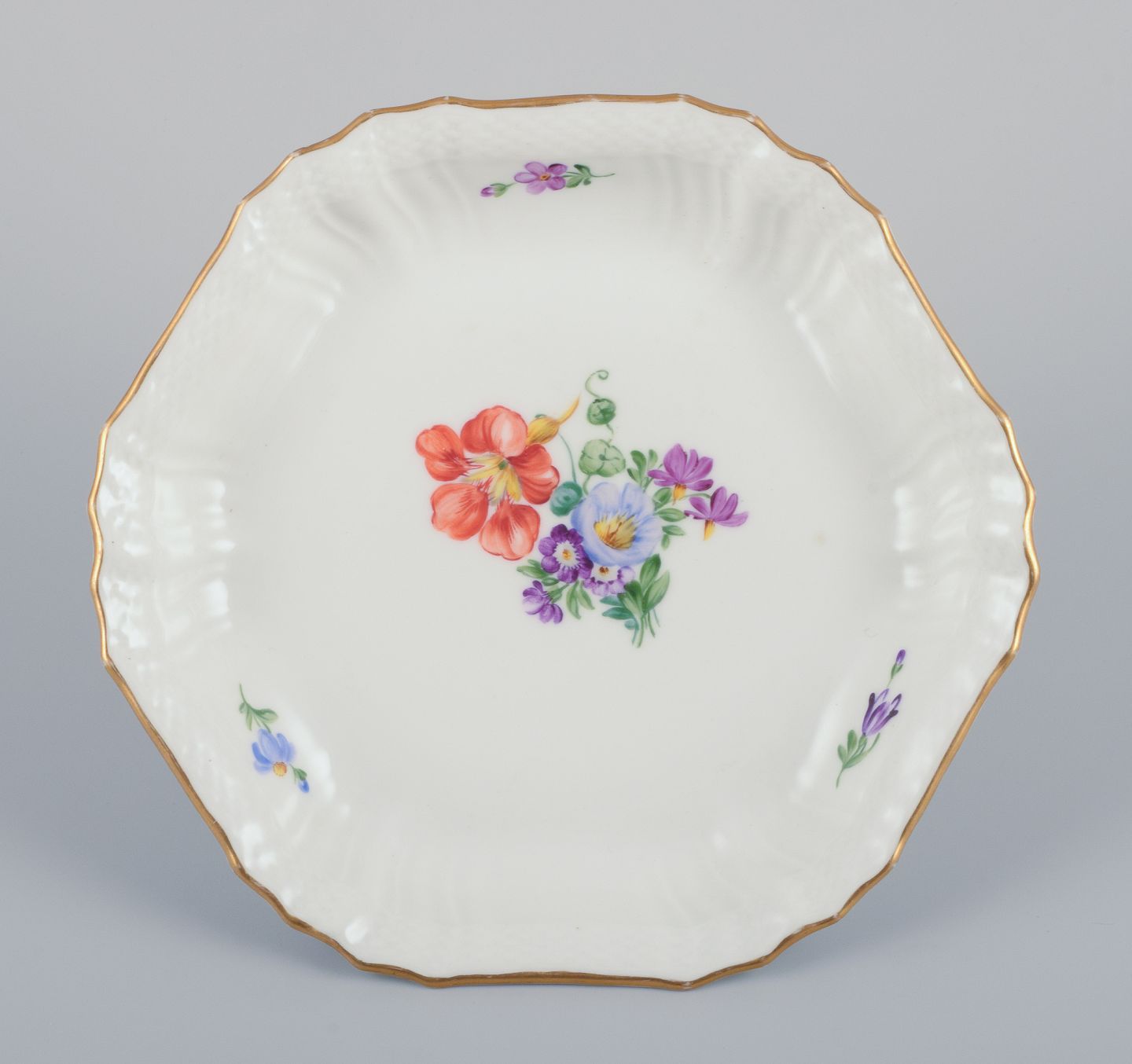 Royal Copenhagen Saksisk Blomst. Skål i porcelæn. Håndmalet med polykrome blomster. Guldkant.