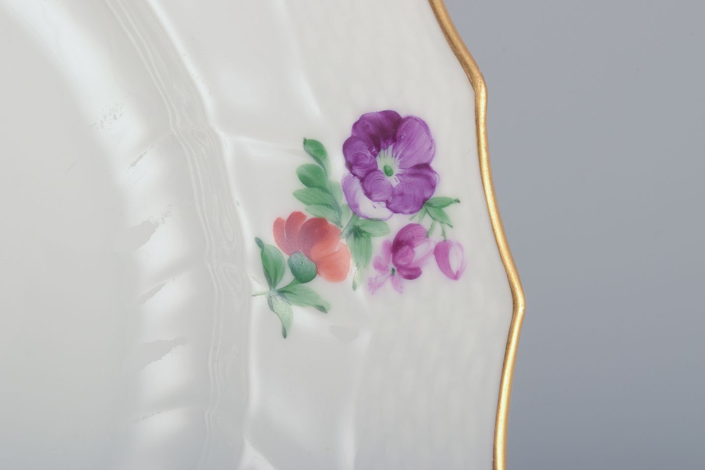 Royal Copenhagen Saksisk Blomst. Tre middagstallerkner i porcelæn. Håndmalet med polykrome blomster.
