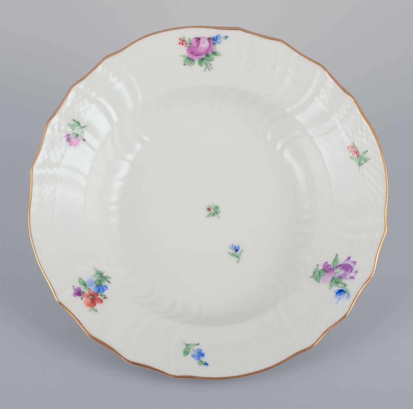 Royal Copenhagen Saksisk Blomst. Seks dybe tallerkner i porcelæn. Håndmalet med polykrome blomster. Guldkant. Ekstra dyb model.