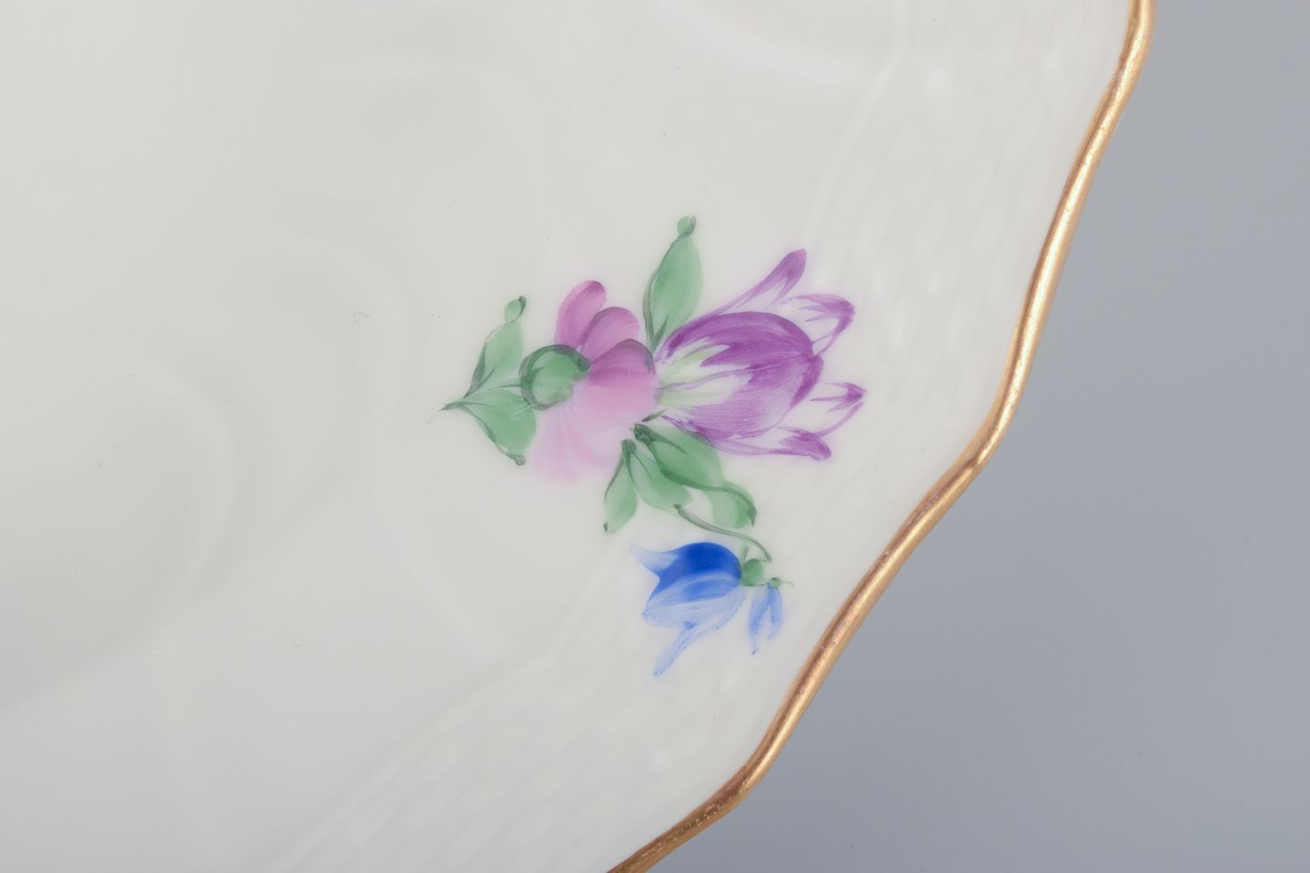 Royal Copenhagen Saksisk Blomst. Seks dybe tallerkner i porcelæn. Håndmalet med polykrome blomster. Guldkant.