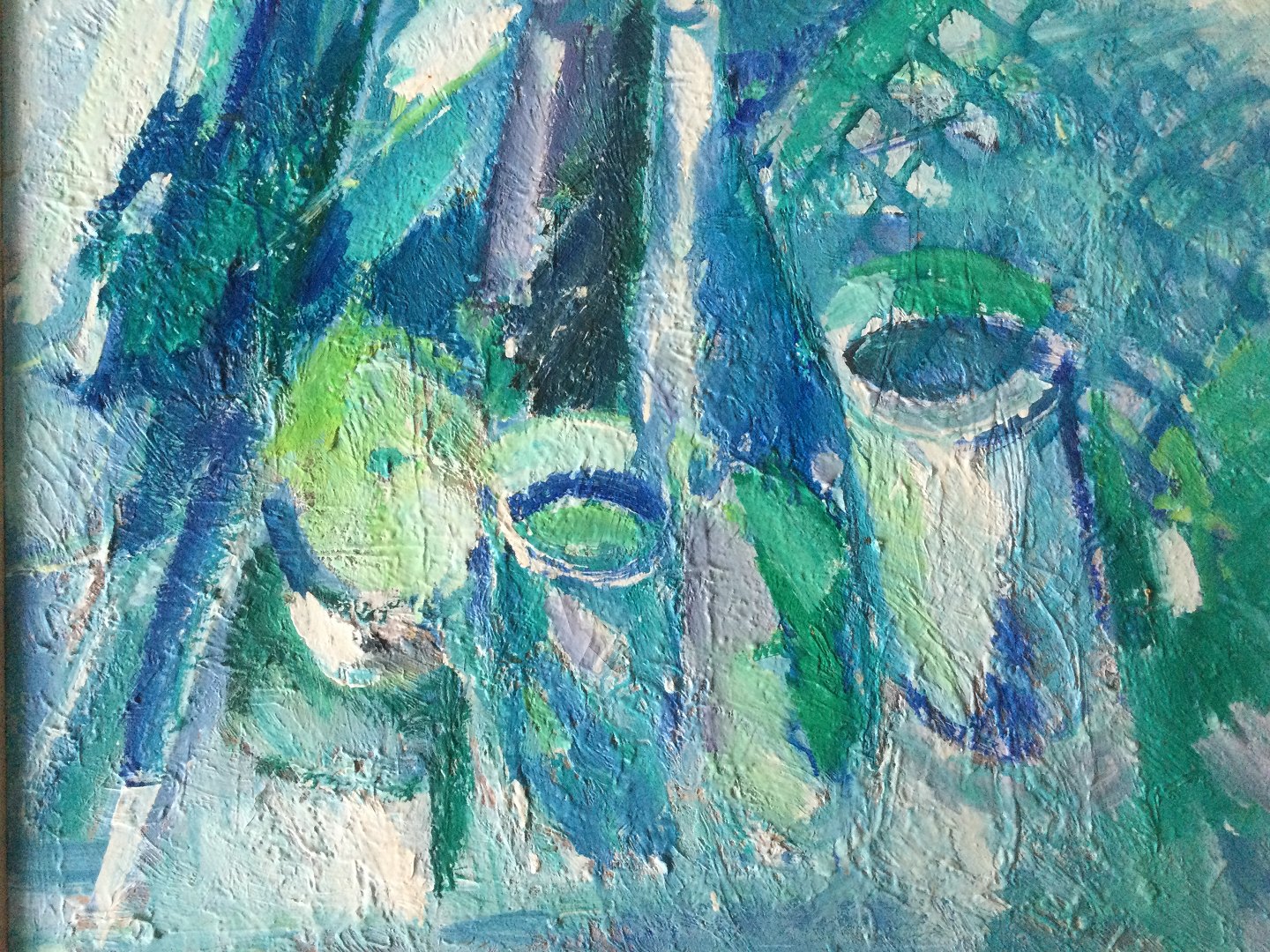 Maleri - Bendt Schneevoigt - Opstilling med flasker og krukker 1983.