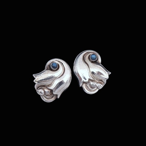 Georg Jensen. Øreskruer i sterlingsølv med månesten #100.
