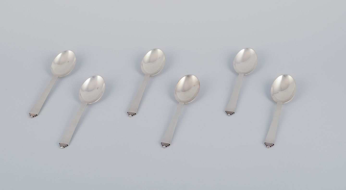 Georg Jensen Pyramid, six dessert spoons in sterling silver.
