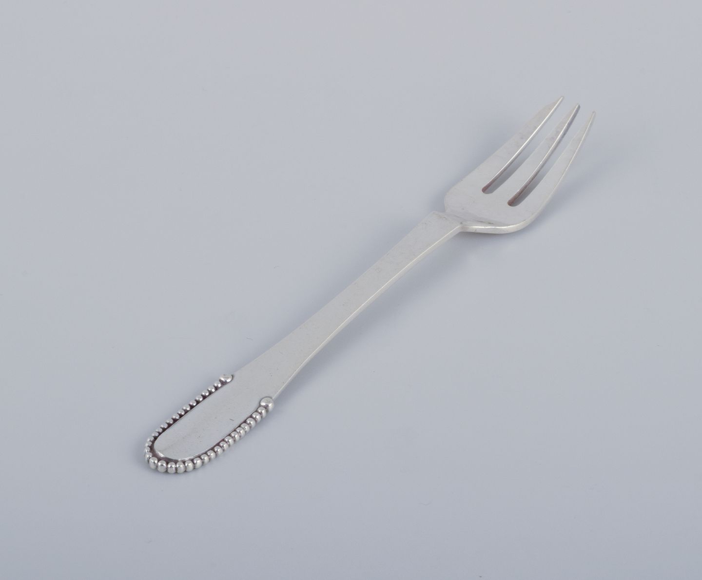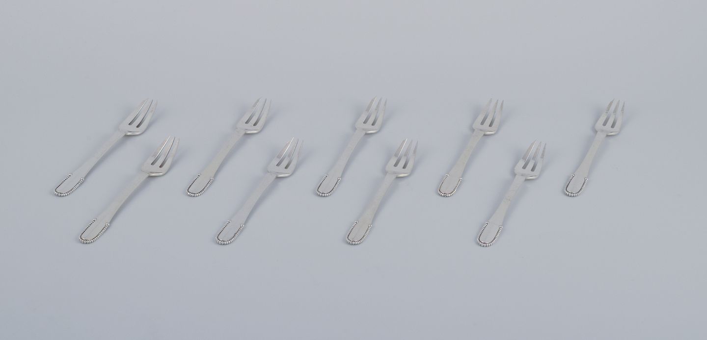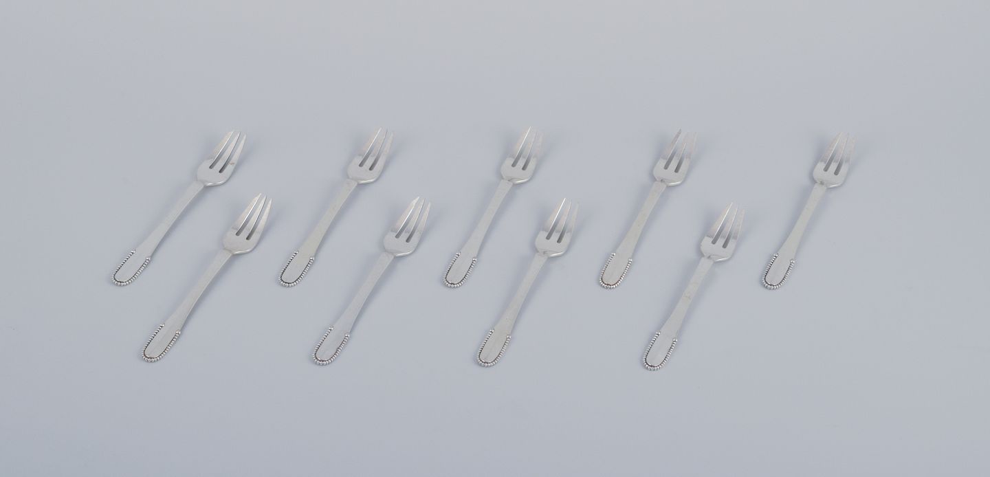 Georg Jensen Beaded, nine cake forks in sterling silver.