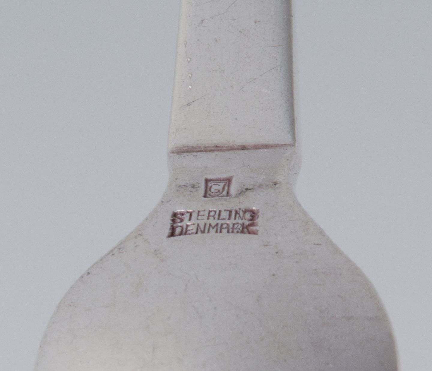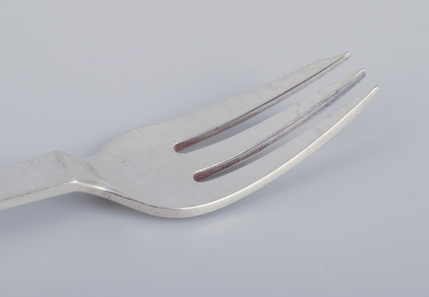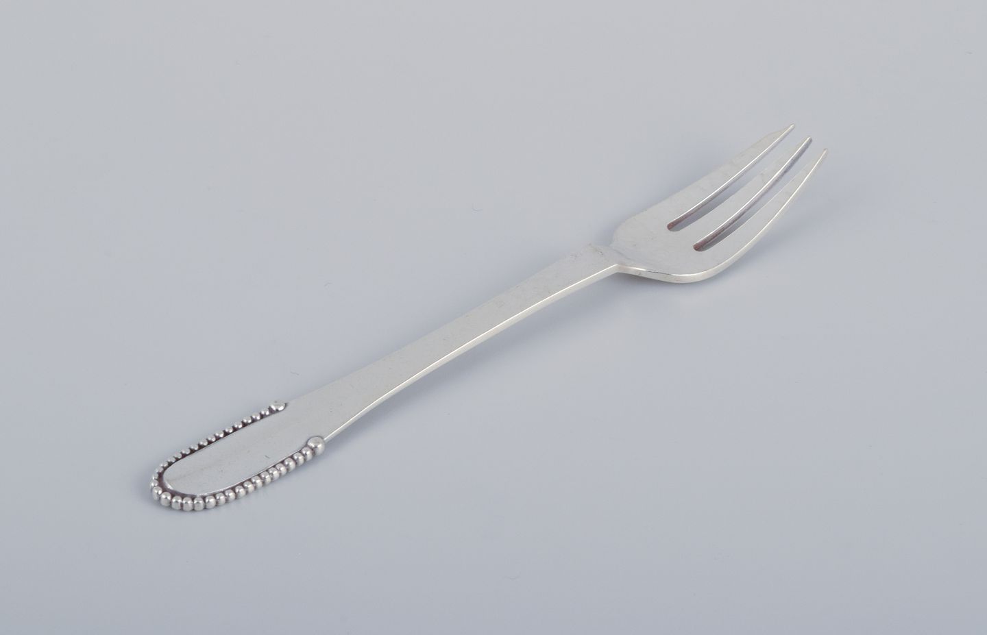 Georg Jensen Beaded, nine cake forks in sterling silver.