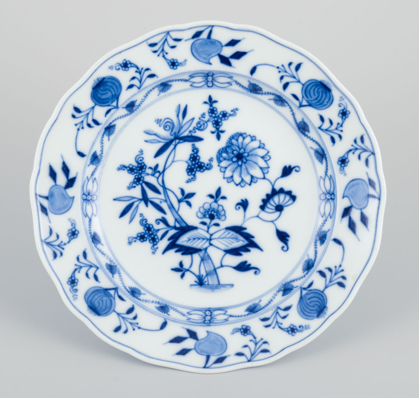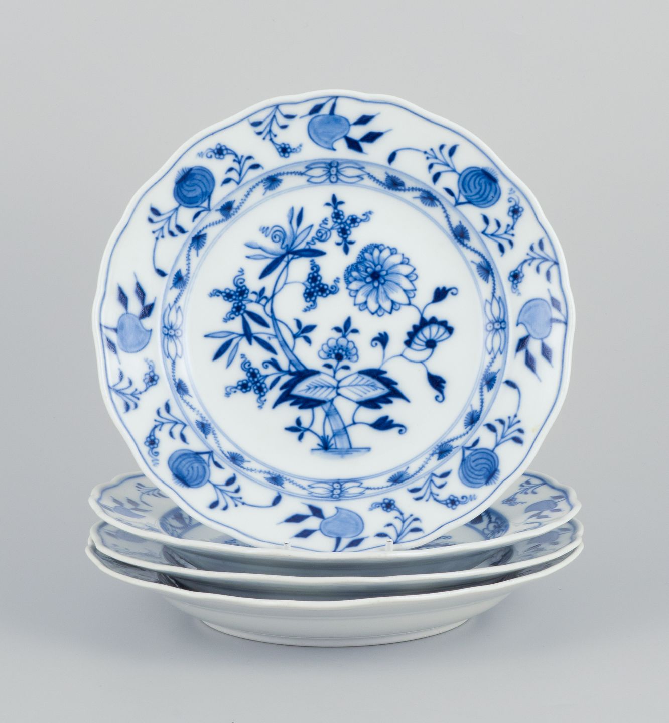 Meissen, Tyskland. Løgmønstret. Fire antikke middagstallerkner.