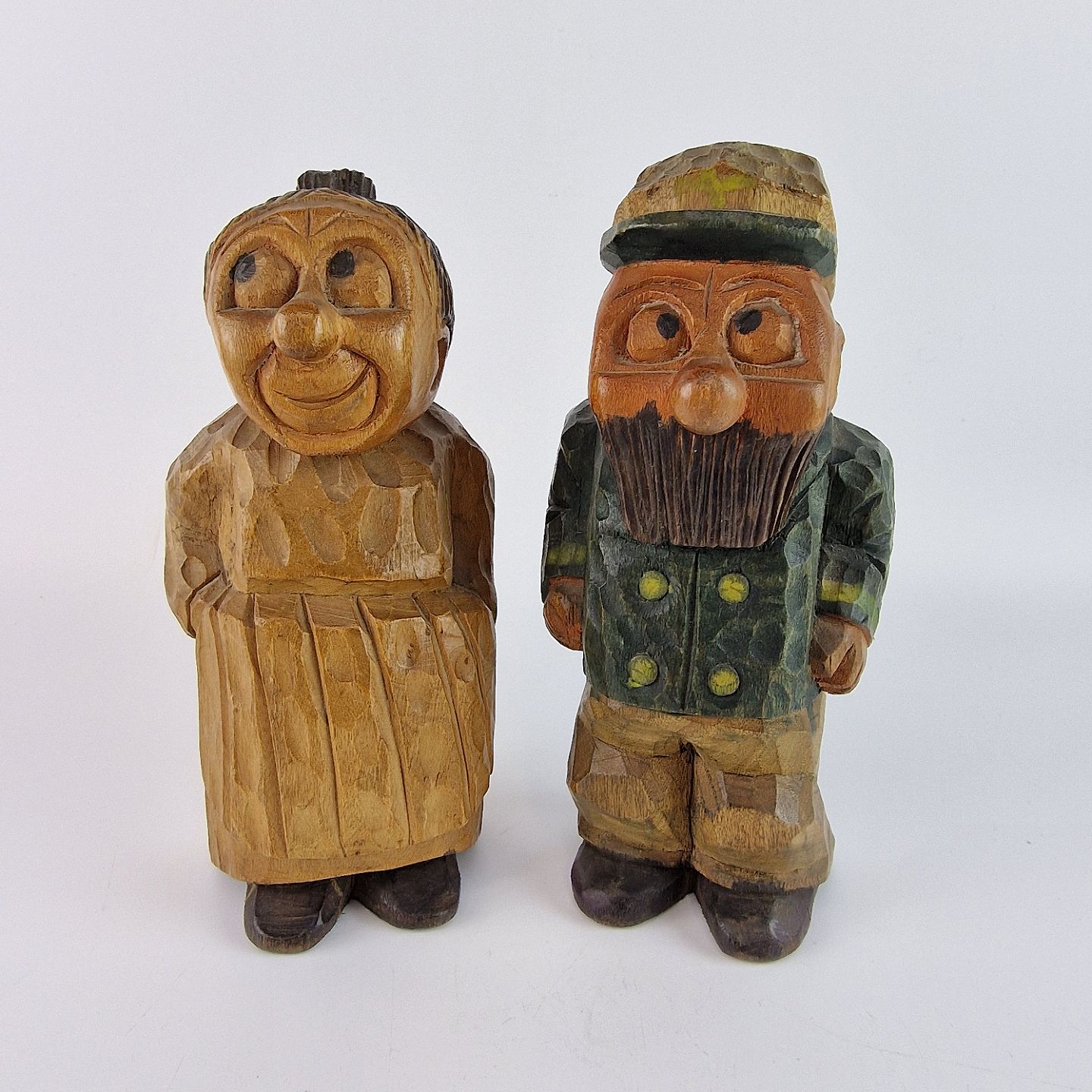 Figurer af træ, som forestiller Kaptajn Vom og hans kone