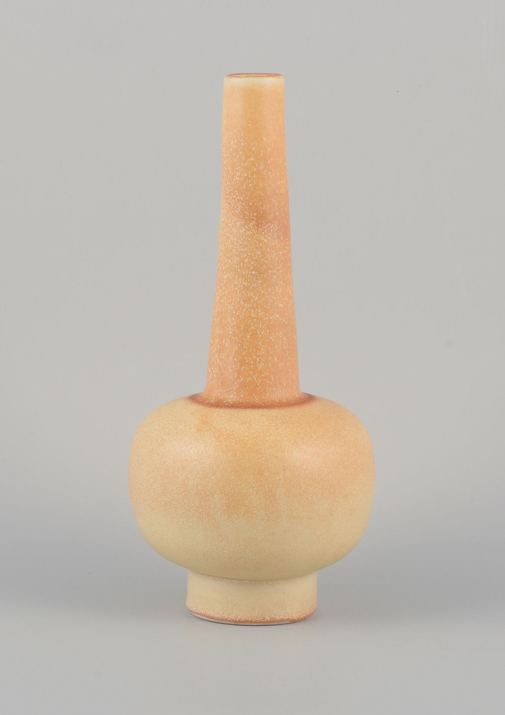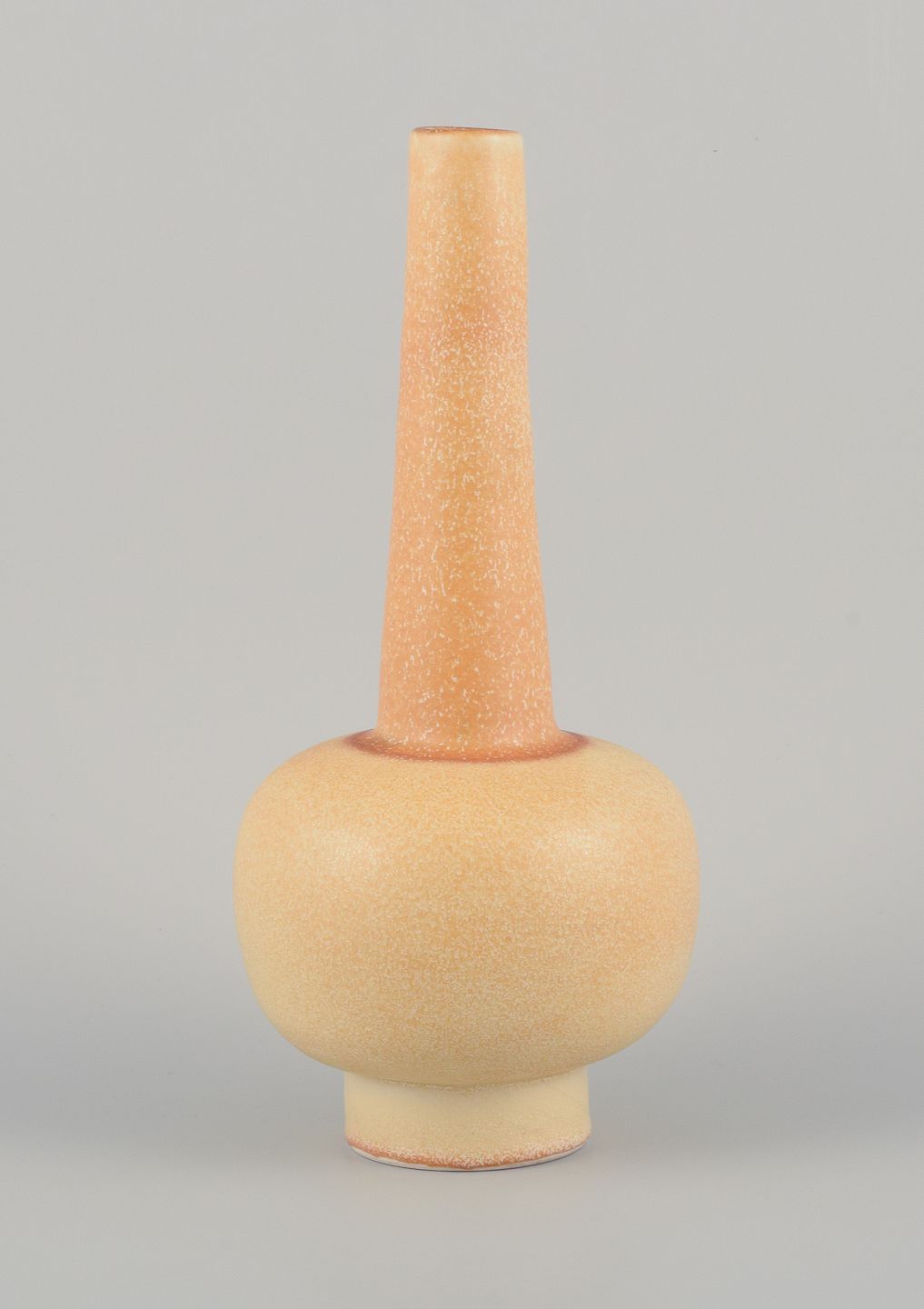 Bobergs Fajansfabrik/Gefle, Sverige. Stor keramikvase, smalhalset. Glasur i gule nuancer.