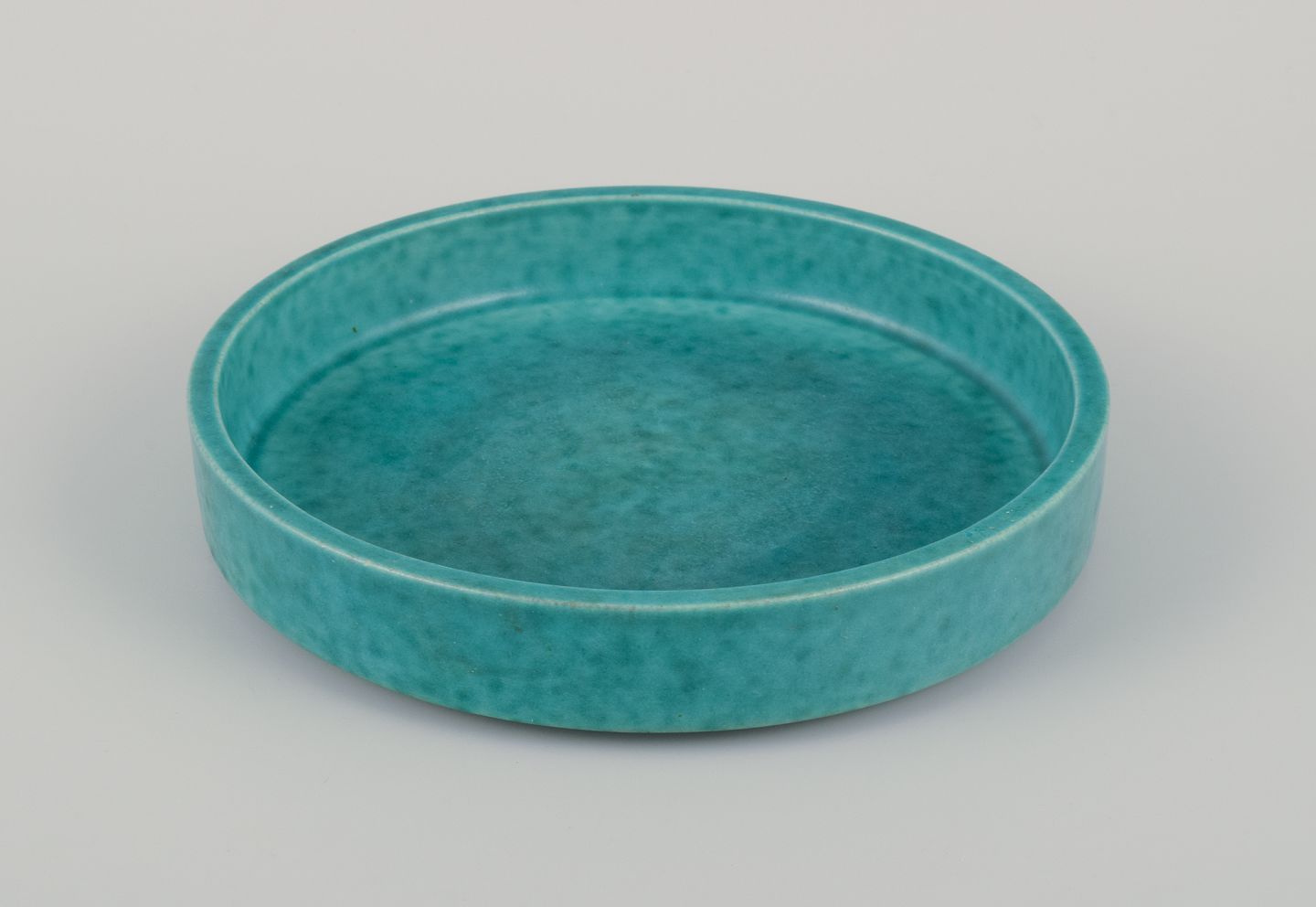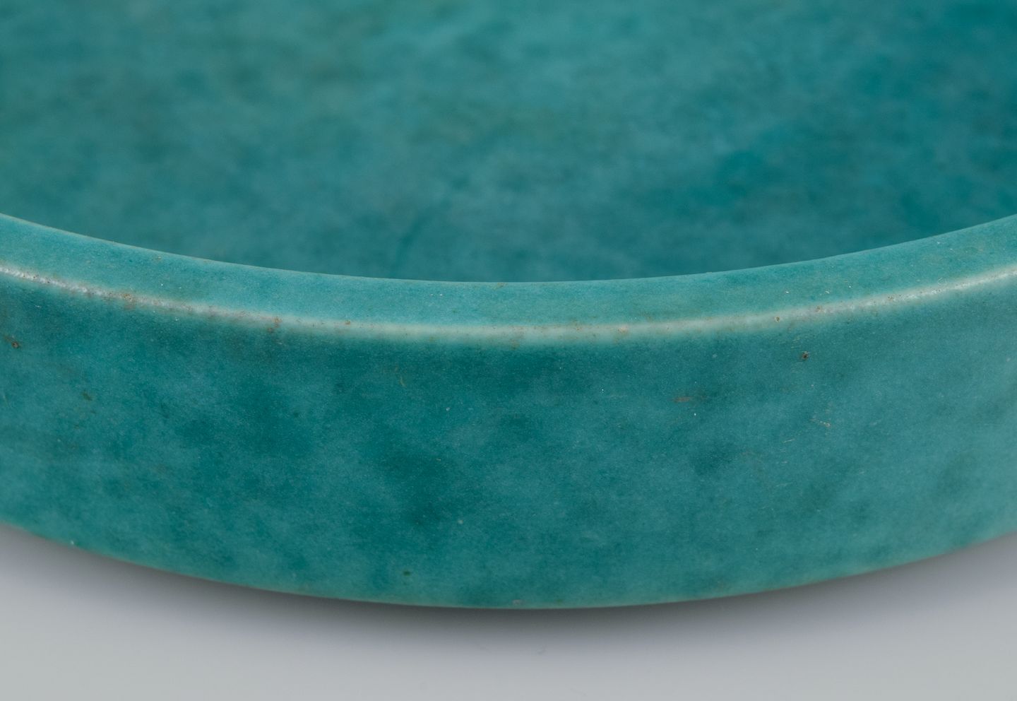 Wilhelm Kåge for Gustavsberg. En keramikskål og et keramikfad fra ”Argenta” serien. Hånddekoreret glasur i grønne nuancer.