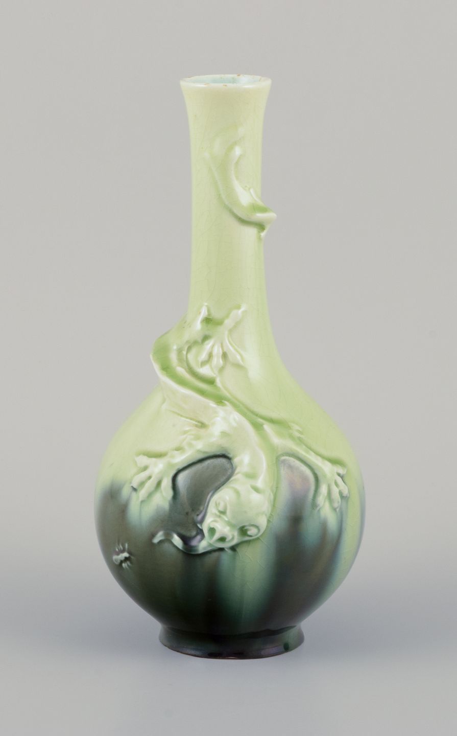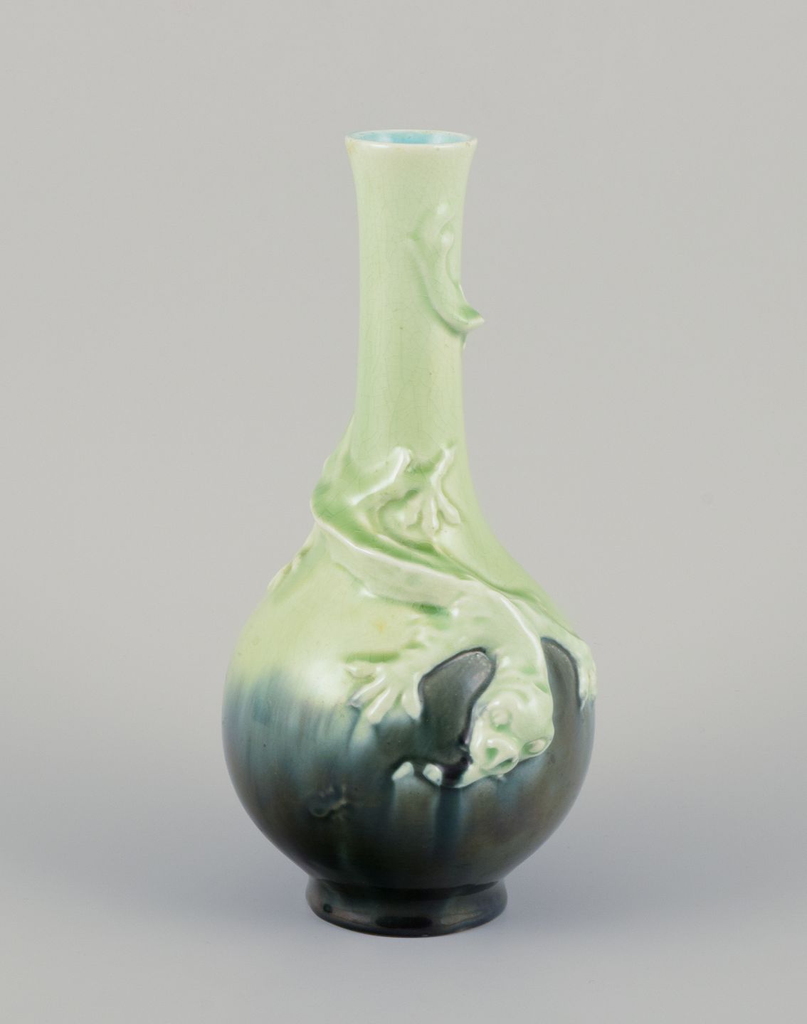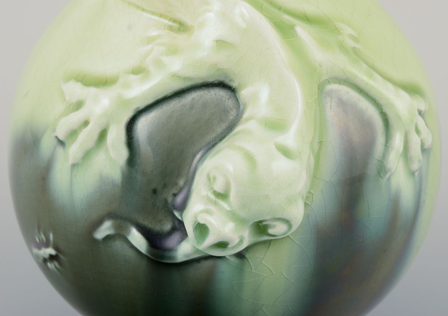 Hånddekoret glasur i grønne toner.