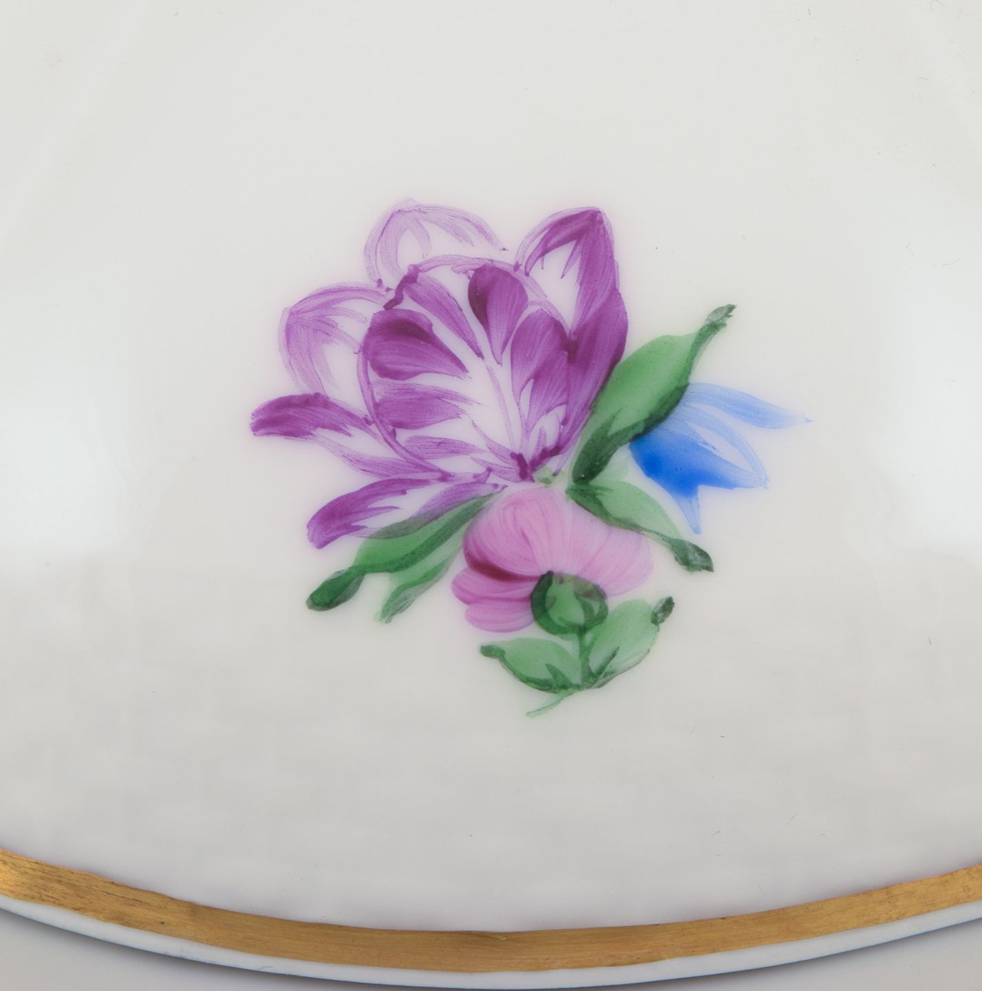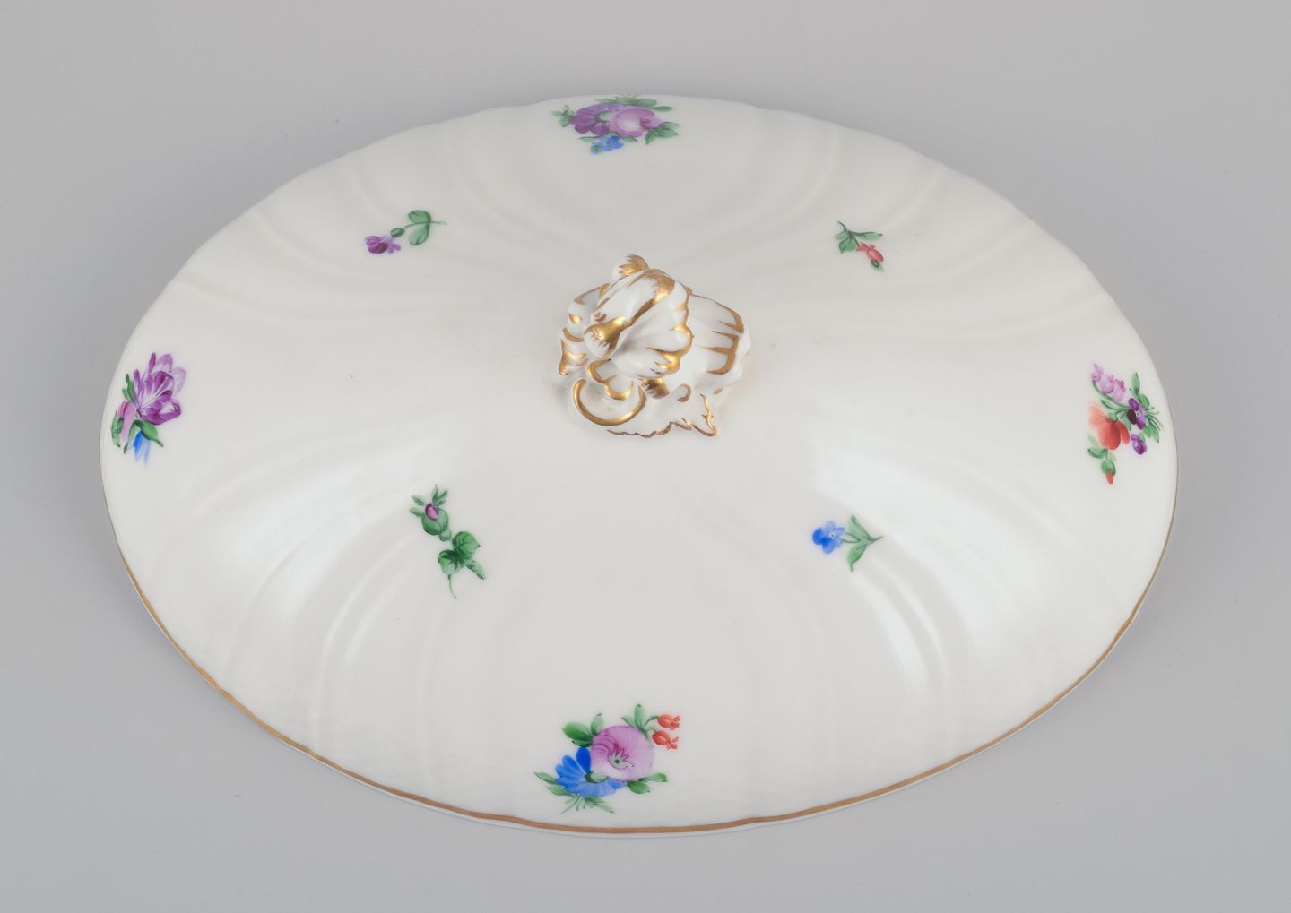 Royal Copenhagen Saksisk Blomst. Stor oval lågterrin i porcelæn. Håndmalet med polykrome blomster. Guldkant.