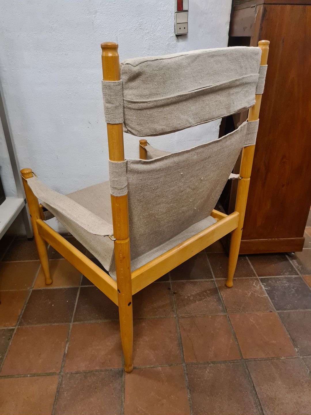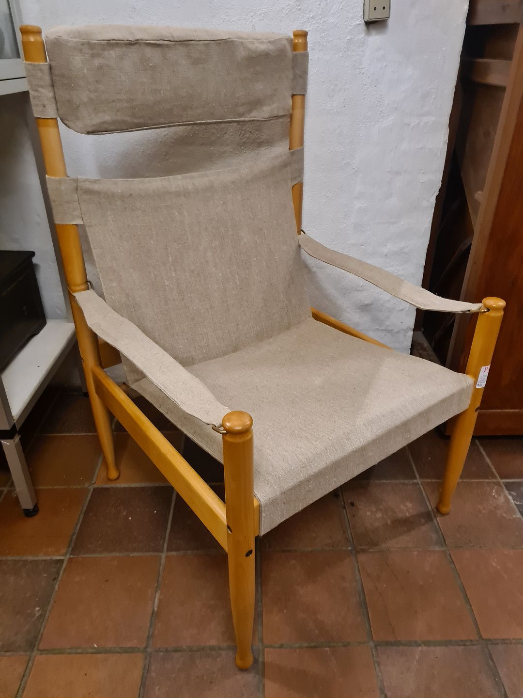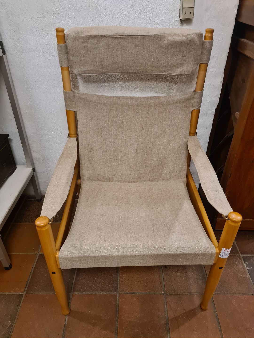 Erik Wørts højrygget safaristol i bøgetræ med køjesæt af kanvas.