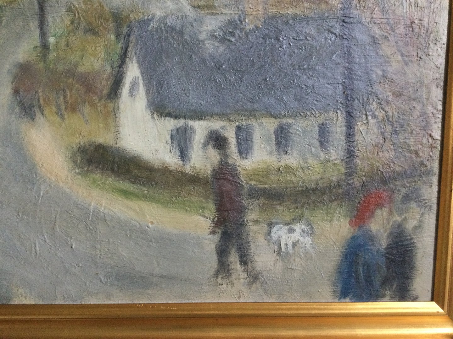 Maleri af Marie Vandmose - Vej gennem by med personer.