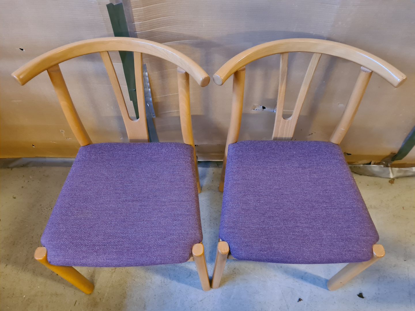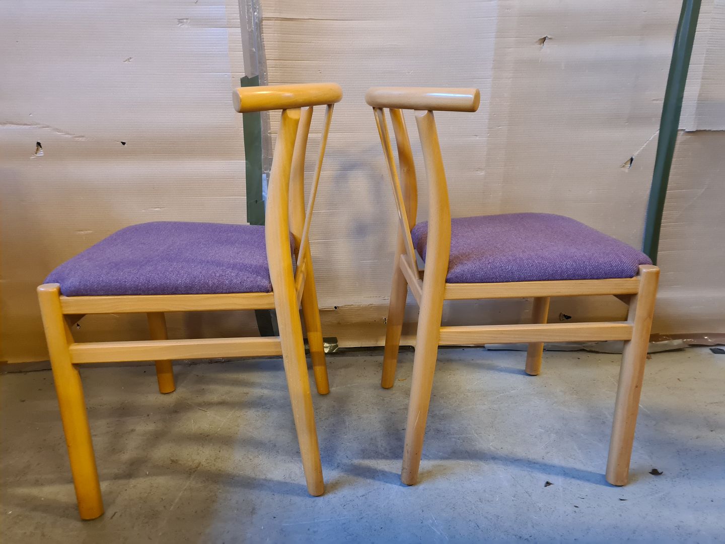 2 Stole i massivt bøgetræ med uldbetræk, fra 2000erne.
