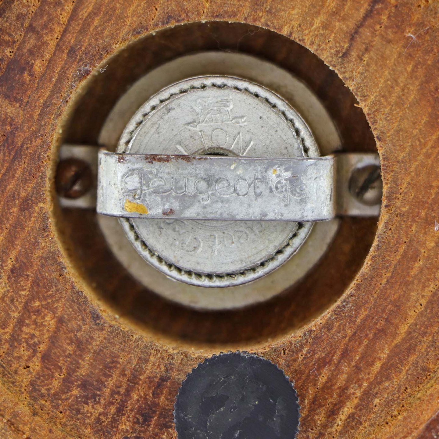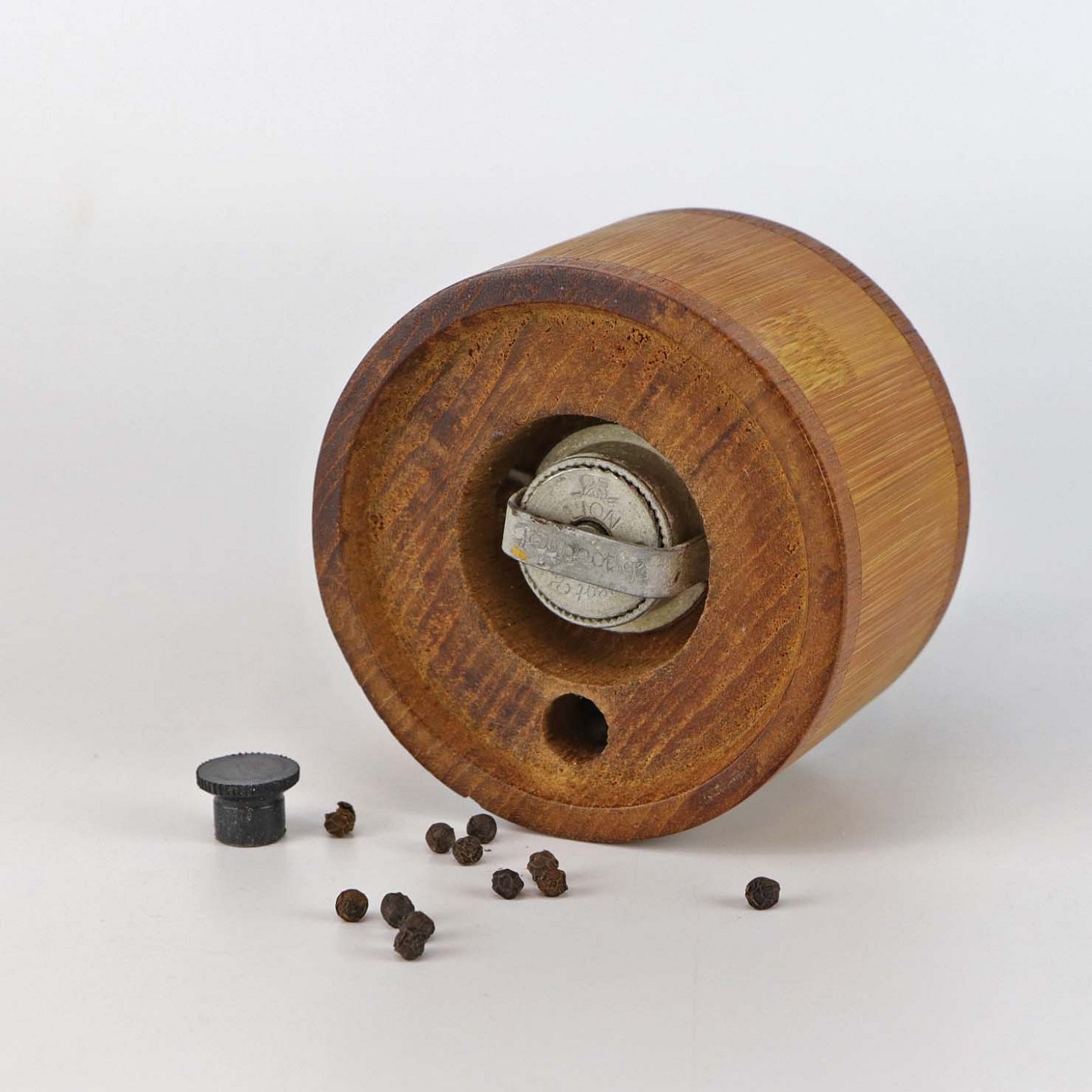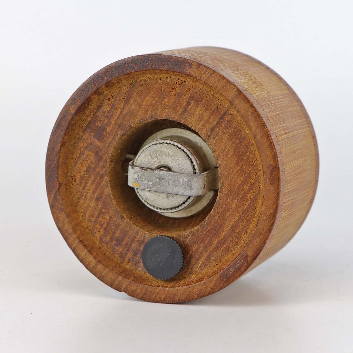 Peberkværn i to-farvet bambus og teaktræ med kværn i metal fra Peugeot Freres Lion
