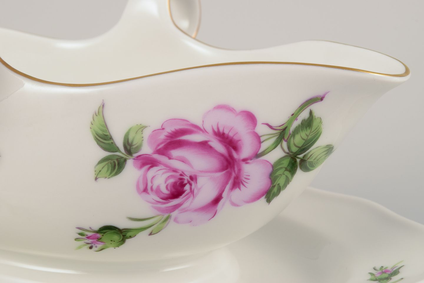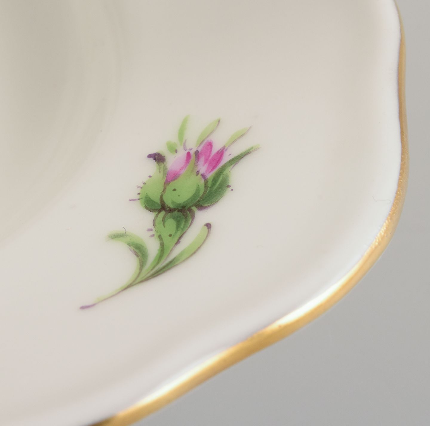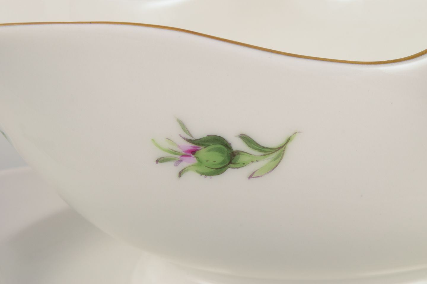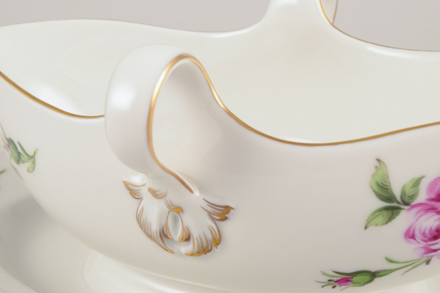 Meissen, Tyskland. Saucekande på fod med motiv af lyserød rose.