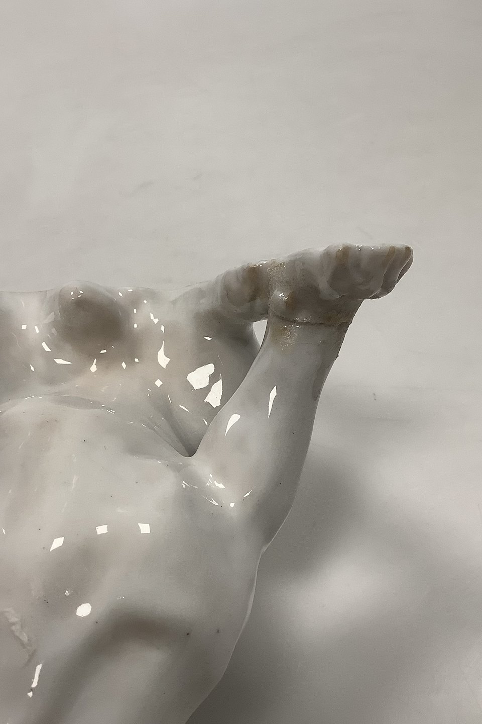 Har reparation på den ene fod.